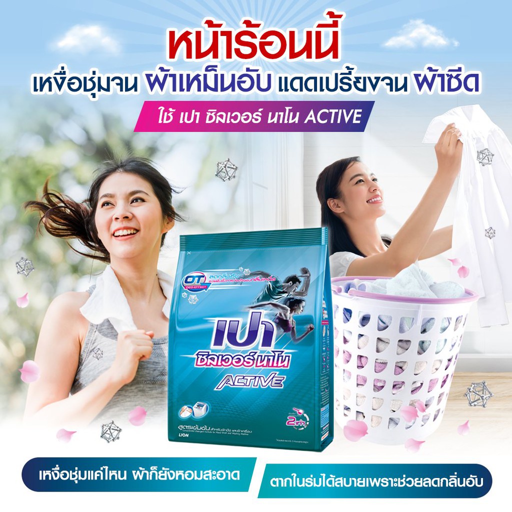 [ยกลัง] PAO Silver Nano Active ผงซักฟอก สูตรเข้มข้น 750 กรัม 12 ถุง