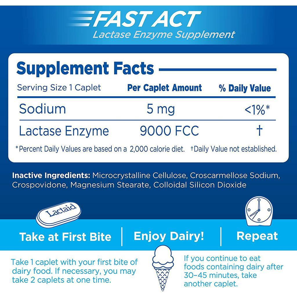 [ของแท้ 100%] LACTAID FAST ACT FOR THE PREVENTION OF GAS BLOATING & DIARRHEA ASSOCIATED WITH DIGESTING DAIRY