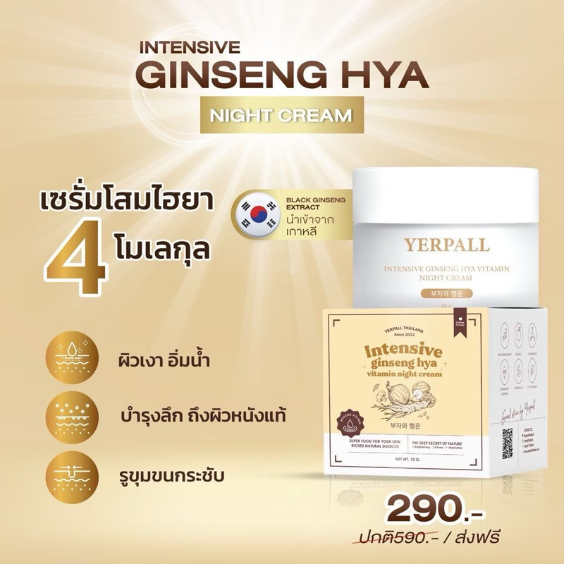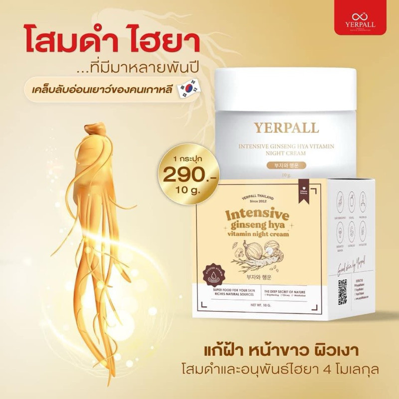 Yerpall ครีมโสม Hya ล็อตใหม่ล่าสุดสินค้าส่งตรงจากบริษัท Intensive Ginseng Hya Vitamin Night Cream