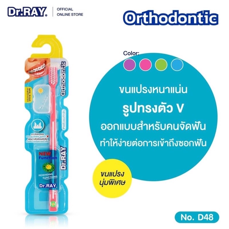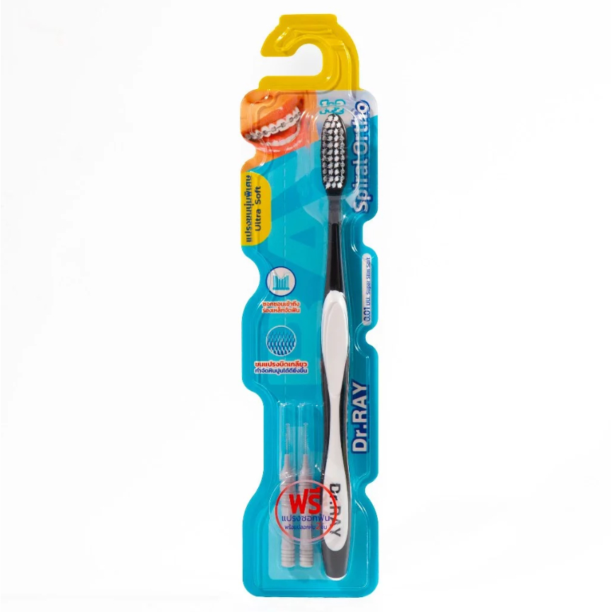 Dr.Ray แปรงจัดฟัน Orthodontic, Travel, Spiral, Multicolor รูปตัวV ขนแปรงหนาแน่น รุ่นปกติ กับ รุ่นพิเศษ+แปรงซอกฟัน 2 ชิ้น