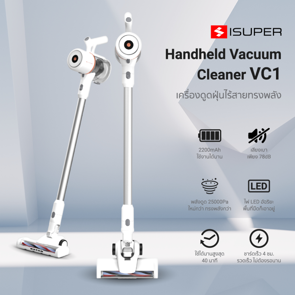 [ลดเหลือ 2242] iSUPER Cordless Vacuum Cleaner VC1 เครื่องดูดฝุ่นไร้สาย 25KPA เครื่องดูดฝุ่นมือถือน้ำหนักเบา -1Y