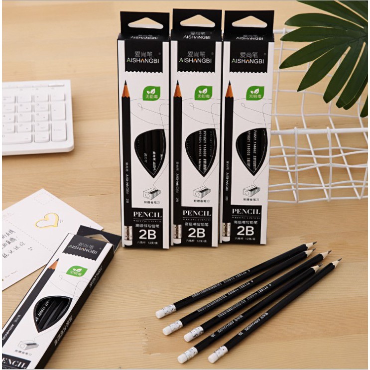 🔥สินค้าเกรดA🔥✏️ดินสอไม้ 2B กล่องขาว-ดำ✔️พร้อมส่ง เครื่องเขียน ดินสอไม้สองบี ดินสอทำข้อสอบ ดินสอ2B