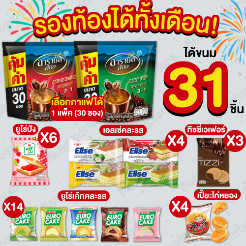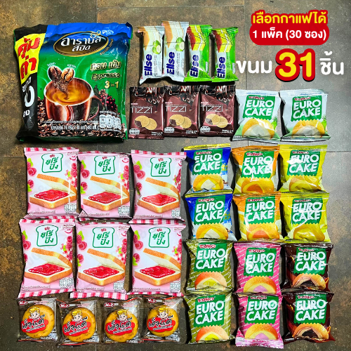 ใหม่🔥เซ็ตรองท้องได้ทั้งเดือน 61 ชิ้น (เลือกกาแฟอาราบัสได้ 1 แพ็ค + ขนม 31 ชิ้น ) อิ่มคุ้มค่า เหมาะสำหรับเช้าที่เร่งรีบ