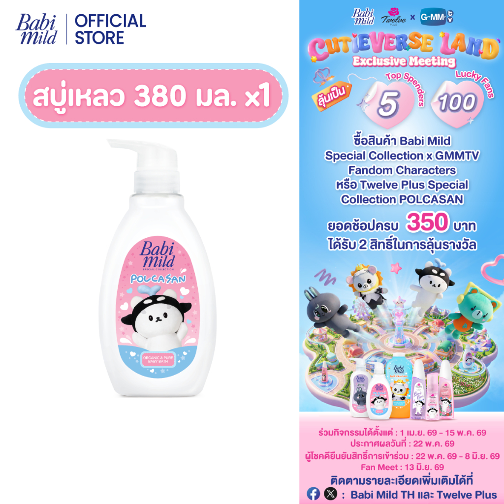 [Babi Mild x Polcasan] สบู่อาบน้ำเบบี้มายด์ ออร์แกนิก&เพียว x โพก้าซัง / Babi Mild Baby Bath 380ml