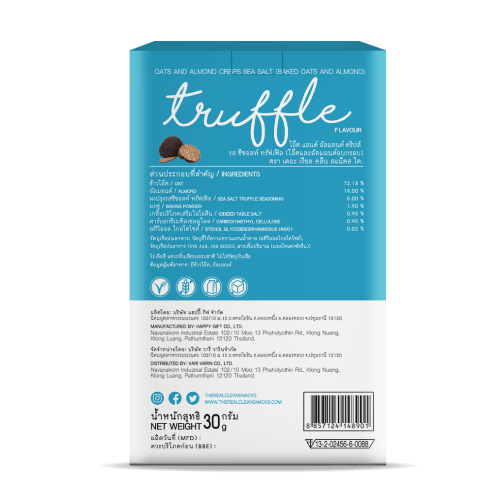The Real Clean Snacks โอ๊ตและอัลมอนด์อบกรอบ รสทรัฟเฟิล Superskinny Oat & Almond Crisps - Truffle (30 g)