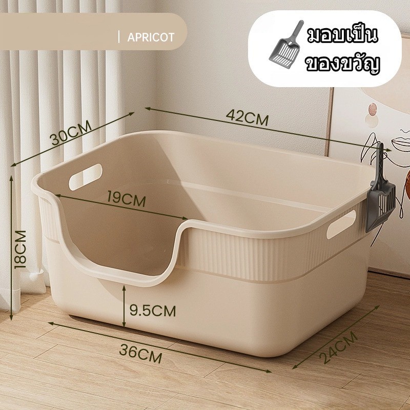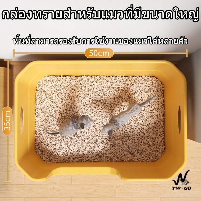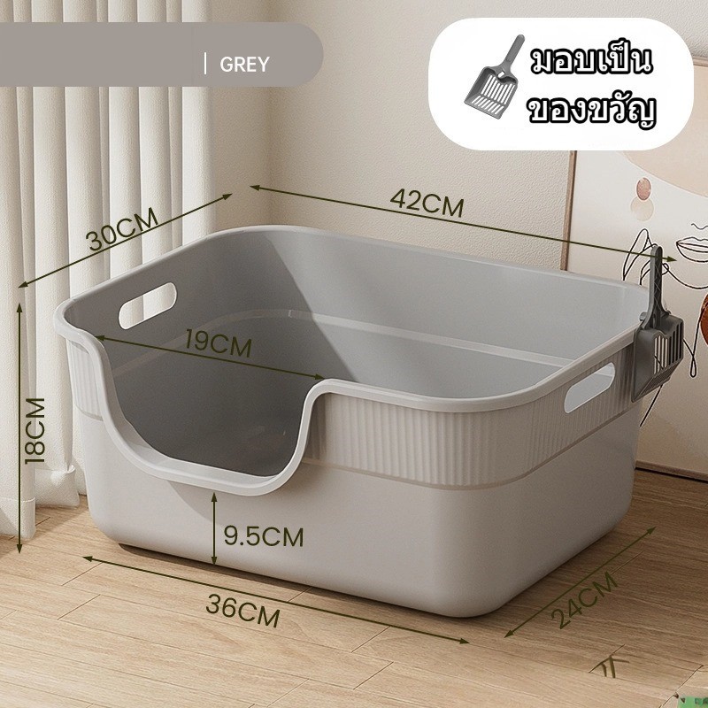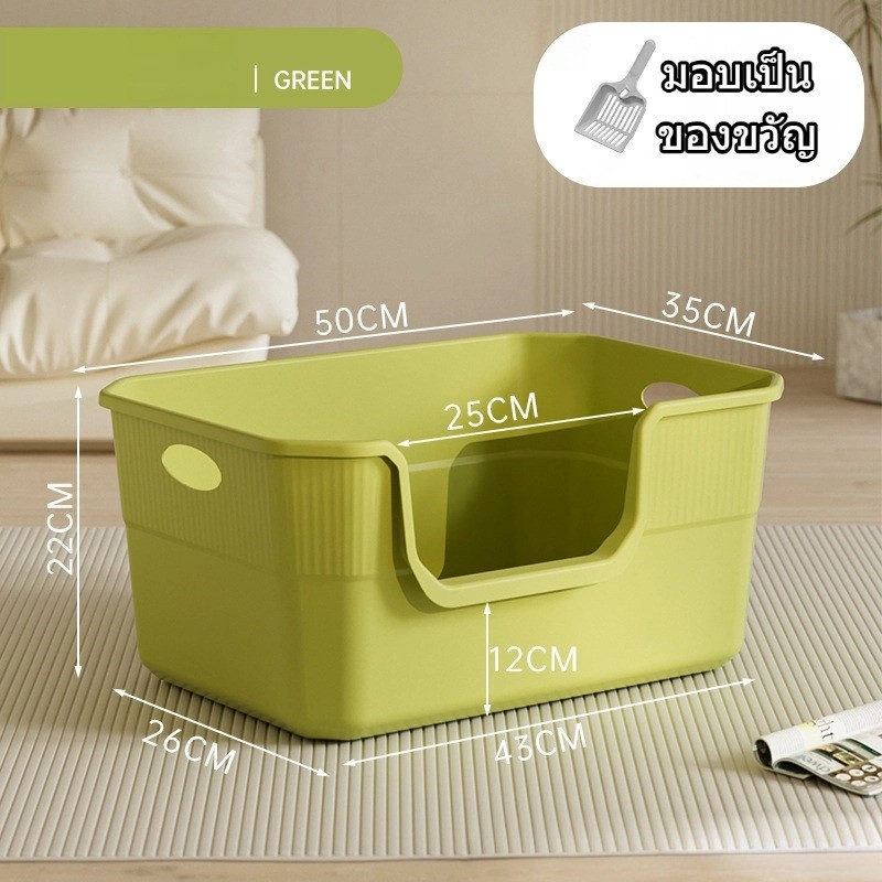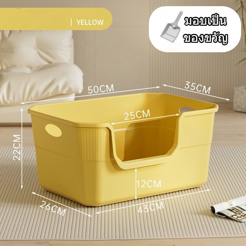 กล่องทรายสำหรับแมวที่มีขอบสูง ขนาดใหญ่มาก พร้อมส้อมเก็บทรายสำหรับแมว หลากสีมีสองขนาดให้เลือก CW51