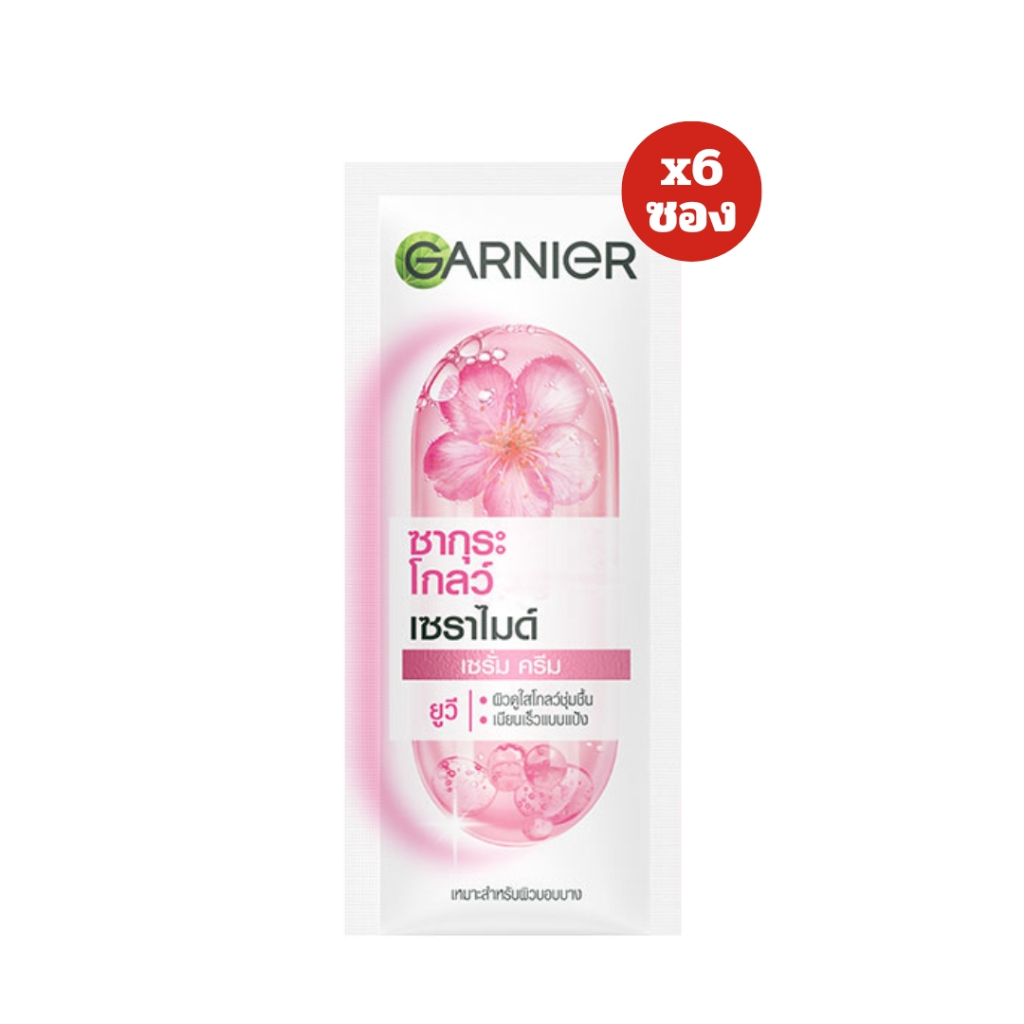 [ 1กล่อง ] Garnier การ์นิเย่ ซากุระ โกลว์ เซราไมด์ เซรั่ม ครีม ยูวี ขนาด 7 มล. ซองฉีก (กล่อง6ซอง)