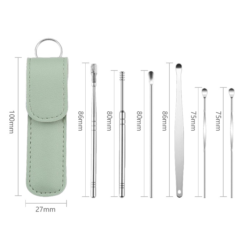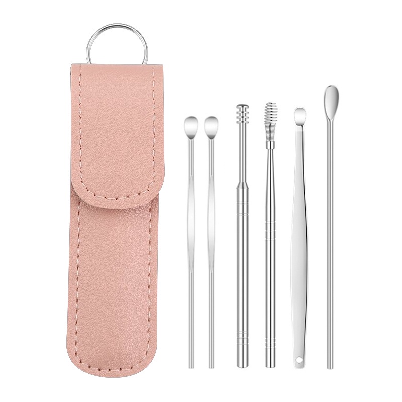 ไม้แคะหูสเตนเลสแท้ ชุดไม้แคะหู 6 in 1 พร้อมซองใส่เก๋ๆ ไม้แคะหู ทำความสะอาดรูหูแบบพกพา