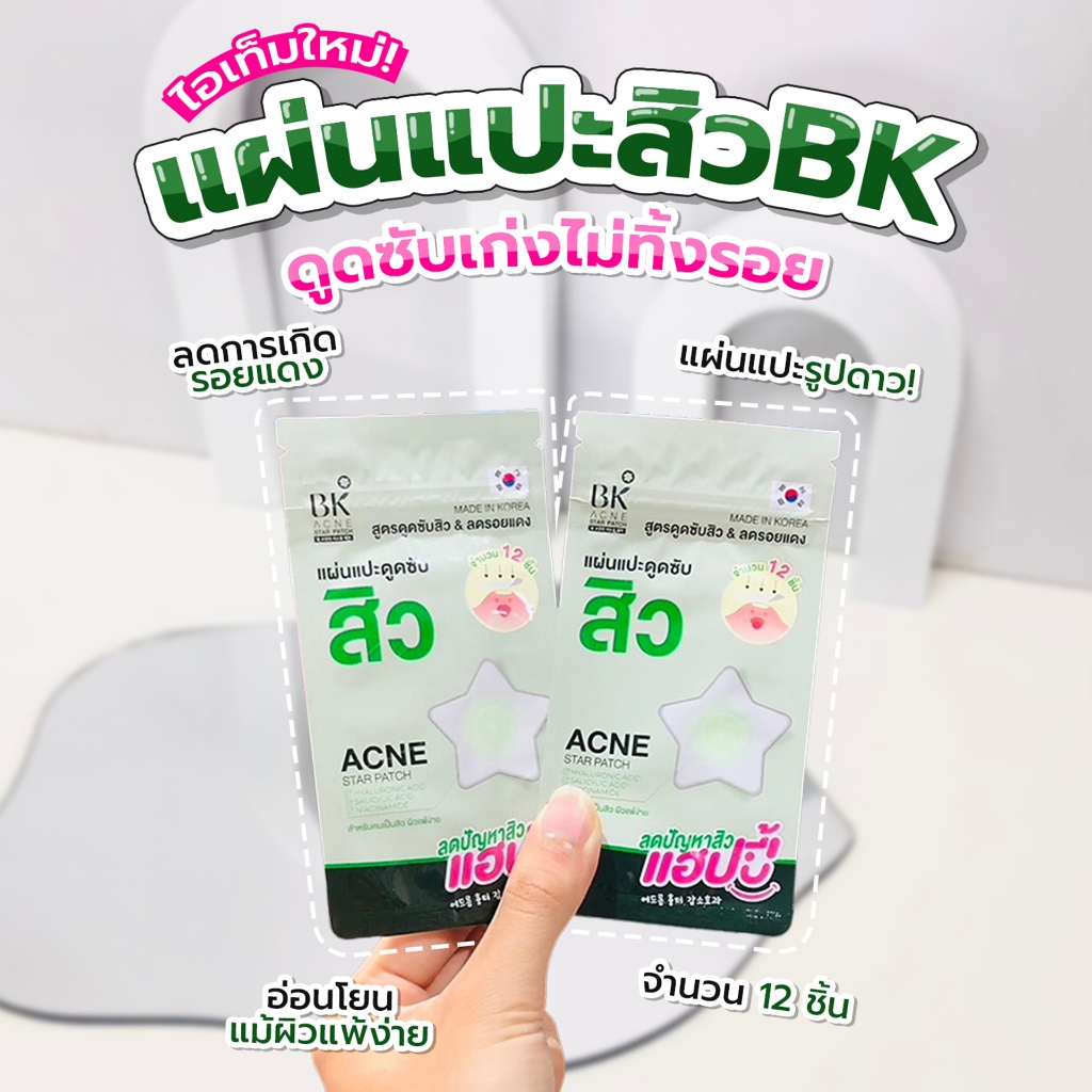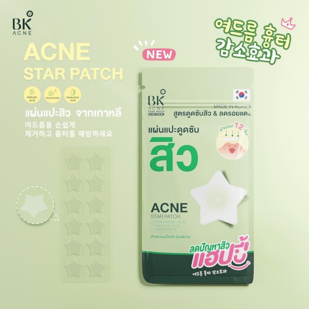 BKACNE บีเค แอคเน่ สตาร์ แพทช์ 12 ชิ้น BK MASK Acne Star Patch 12 pcs. (ซองเดี่ยว)