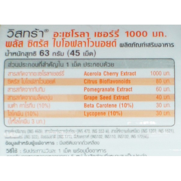 Vistra Acerola Cherry 1000 mg 45 เม็ด 2 ขวด[480853]