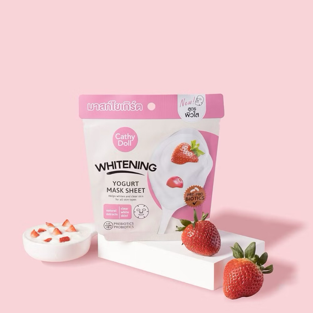 แผ่นมาส์ก เคที่ดอลล์ มาสก์โยเกิร์ต 4 สูตร ลดริ้วรอย จุดด่างดำ ผิวใส ตึงกระชับ Cathy Doll Yogurt Mask Sheet 25g.