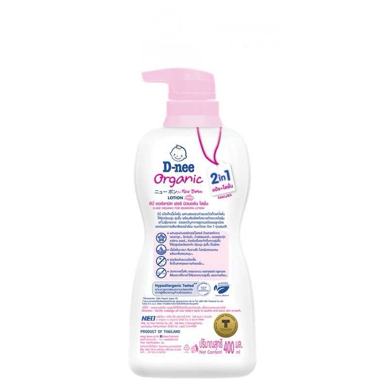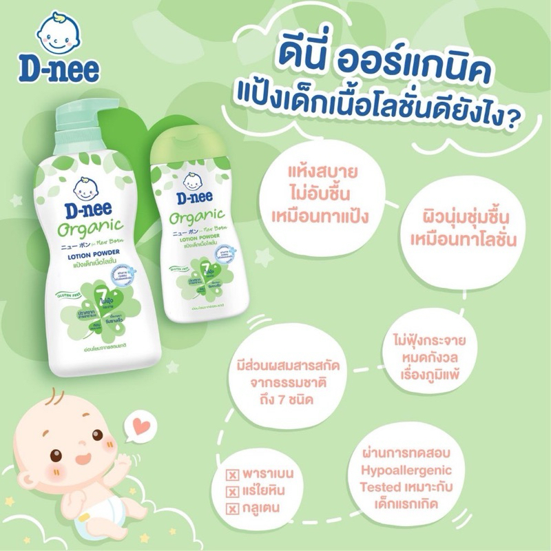 [ X1ขวด ]D-nee ดีนี่ ออร์แกนิค นิวบอร์น แป้งเด็กเนื้อโลชั่น กลิ่นหอม (180/400 มล.)