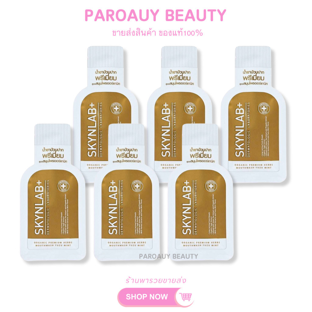 ( 1 กล่อง 6 ซอง ) น้ำยาบ้วนปาก Skynlab PREMIUM FRESH MINTอ่อนโยน ลดกลิ่นปาก ( มี 2 สูตร )
