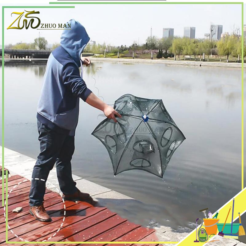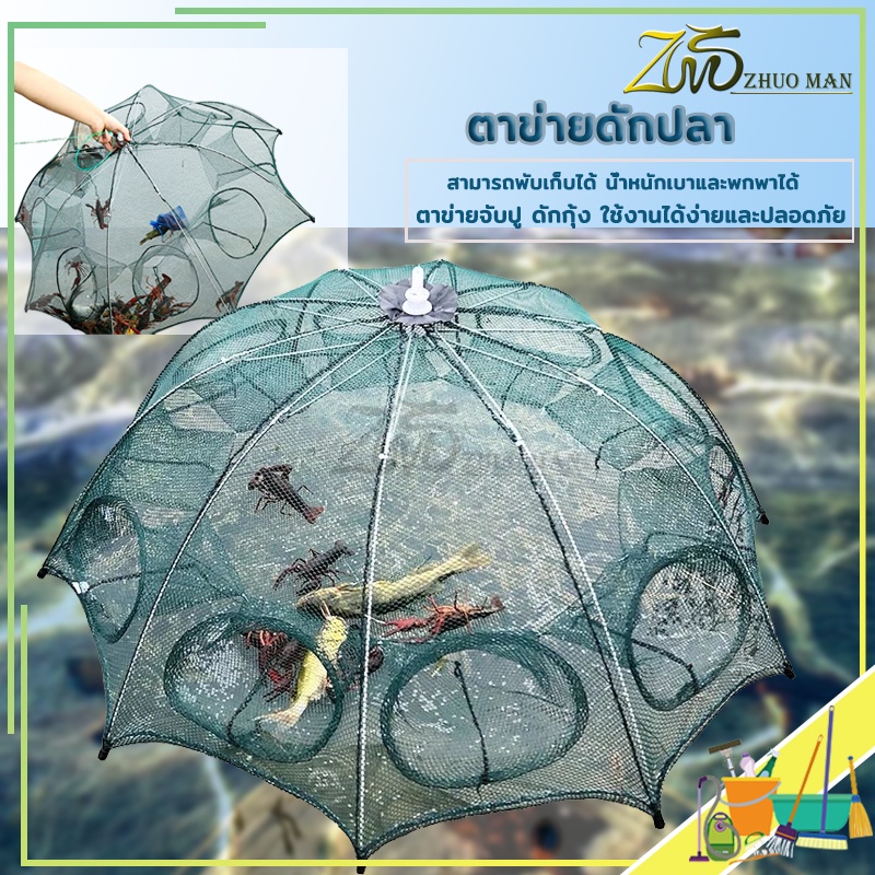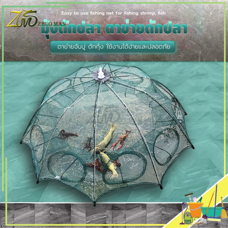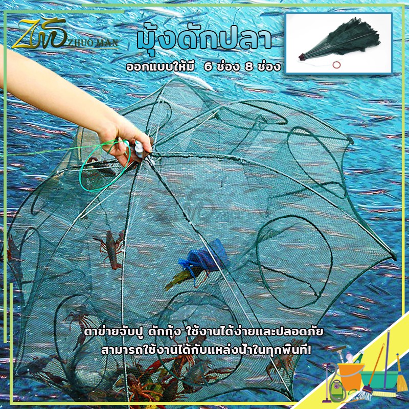 ตาข่ายดักปลา มุ้งดักกุ้ง ที่ดักปลา ปลีก/ส่ง ที่ดักกุ้ง พับเก็บได้ ที่จับปลา อุปกรณ์ตกปลา 6หลุม และ 8หลุม