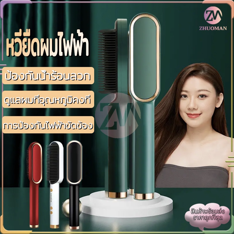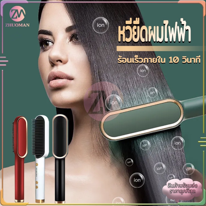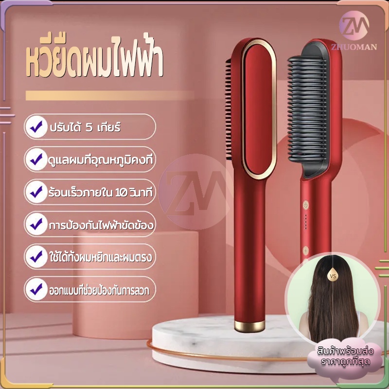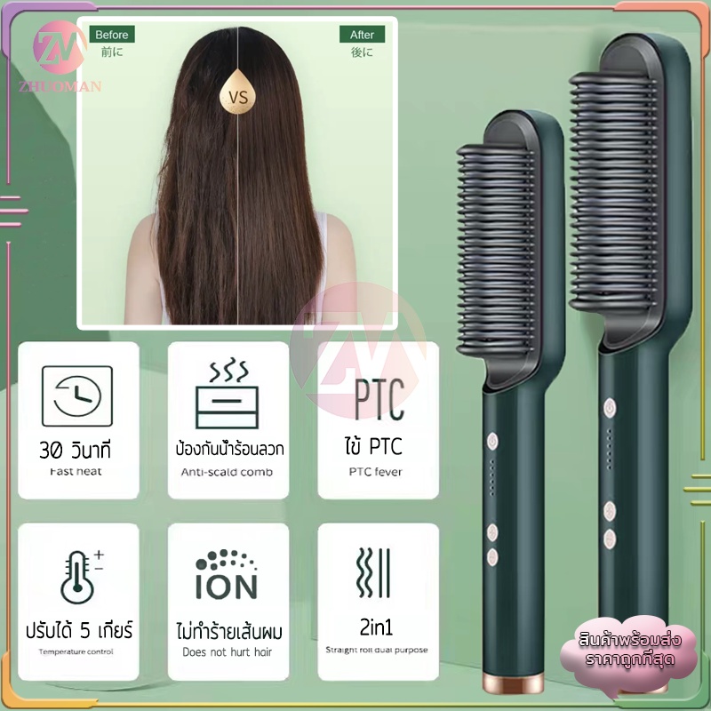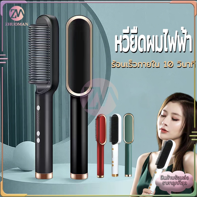 หวียืดผม หวียืดผมไฟฟ้า ที่ม้วนผมไฟฟ้า หวีไฟฟ้า หวีผมตรง ร้อนเร็วภายใน 10 วินาที วัตถุประสงค์คู่ทั้งม้วนและตรง มี4สี