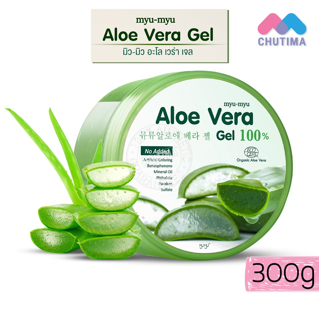 มิว มิว อะโล เวร่า เจลว่านหางจระเข้ เข้มข้น ใช้บำรุงผิวหน้าและผิวกายหลังออกแดด Myu-Myu Aloe Vera Gel 100% 300g.