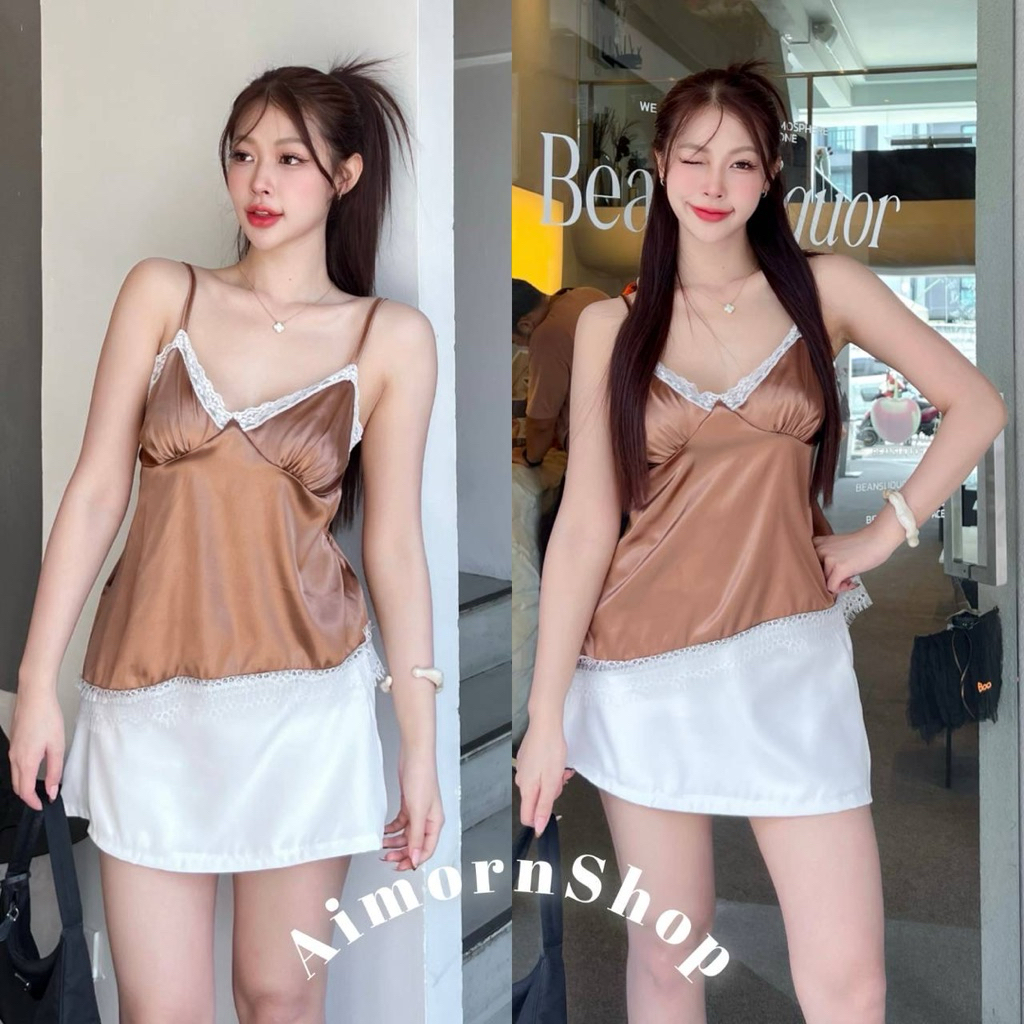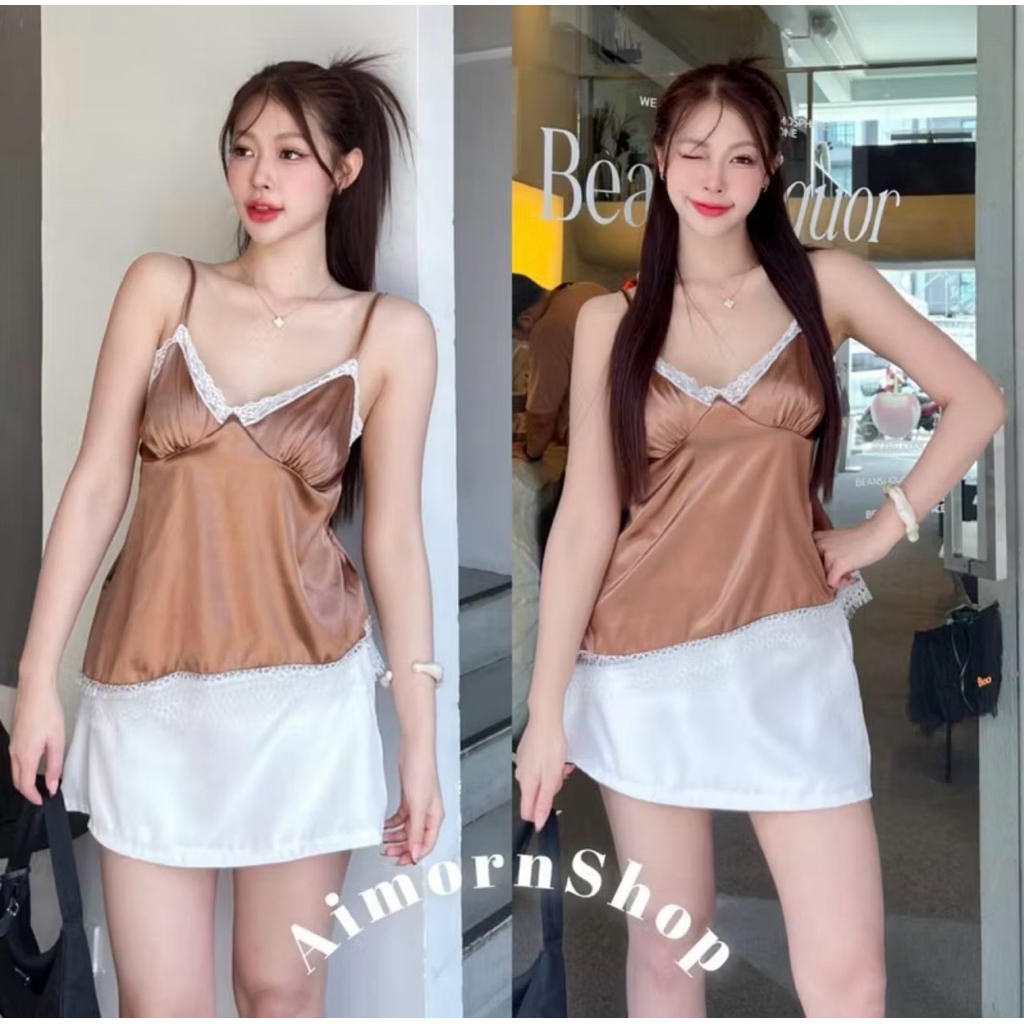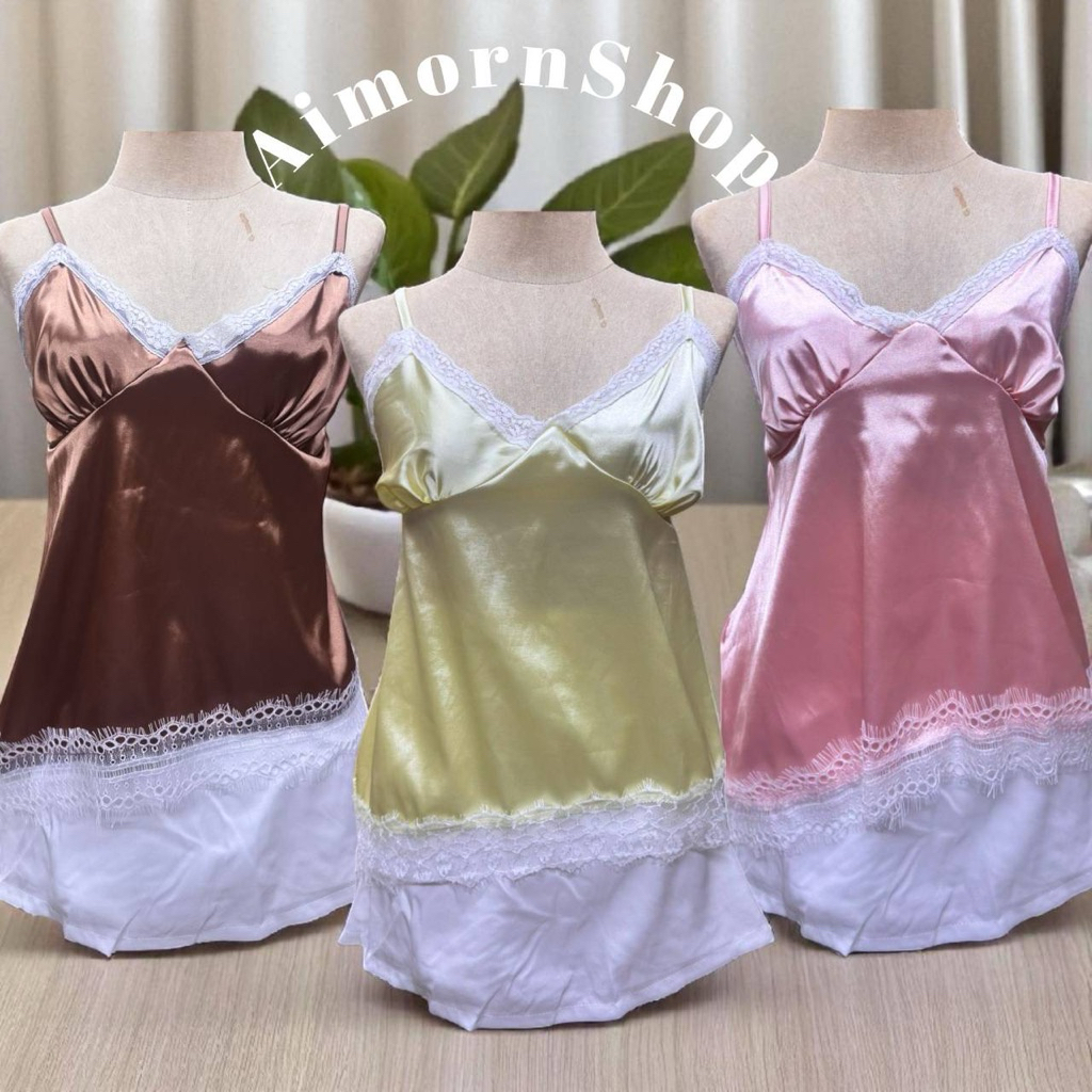 🔥aimorn_shop🔥เสื้อสายเดี่ยวลูกไม้ ผ้าซา ติน สวยแซ่บมาก สาวๆต้องมี ผ้าใส่สบายสุดๆ
