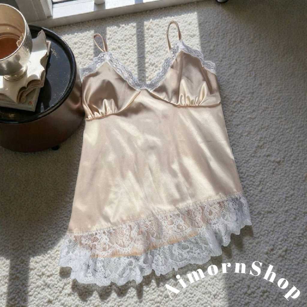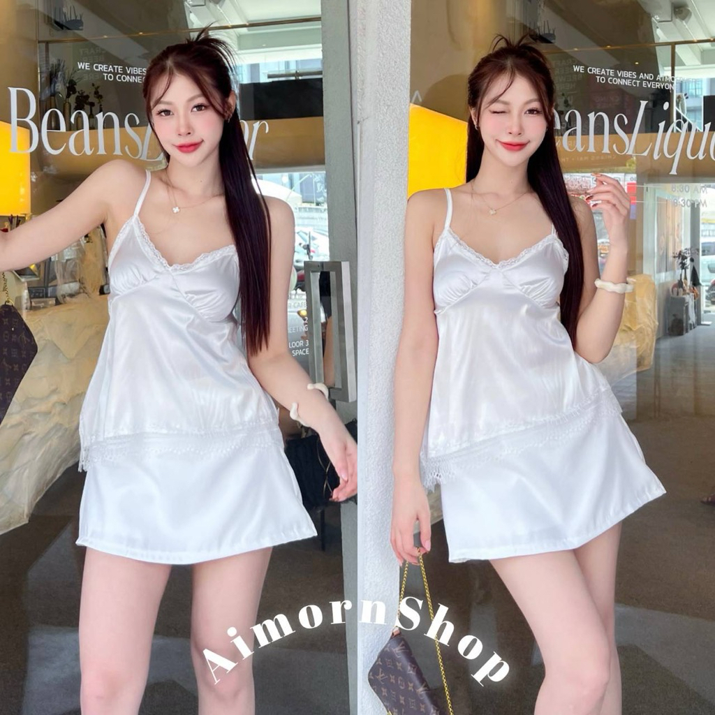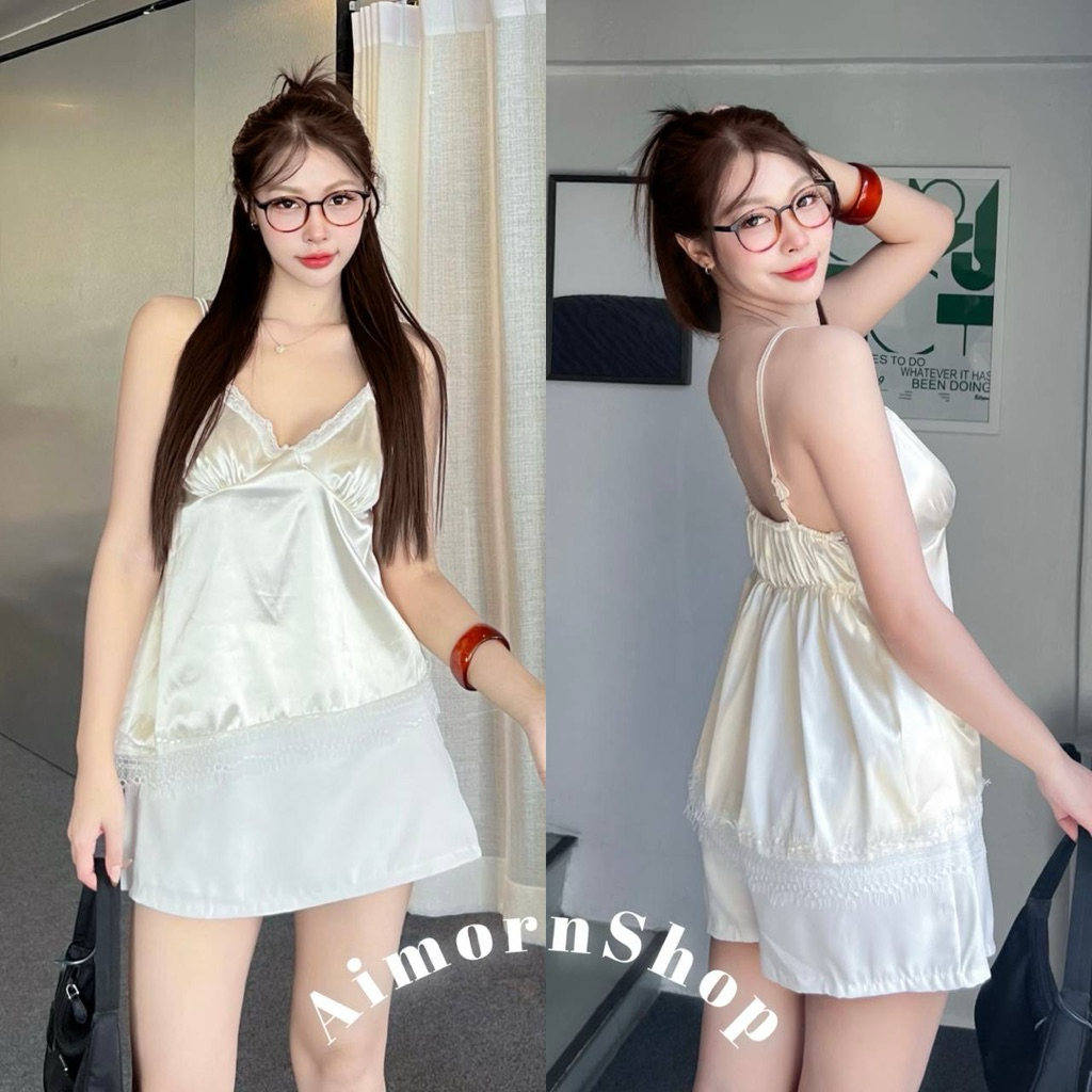 🔥aimorn_shop🔥เสื้อสายเดี่ยวลูกไม้ ผ้าซา ติน สวยแซ่บมาก สาวๆต้องมี ผ้าใส่สบายสุดๆ