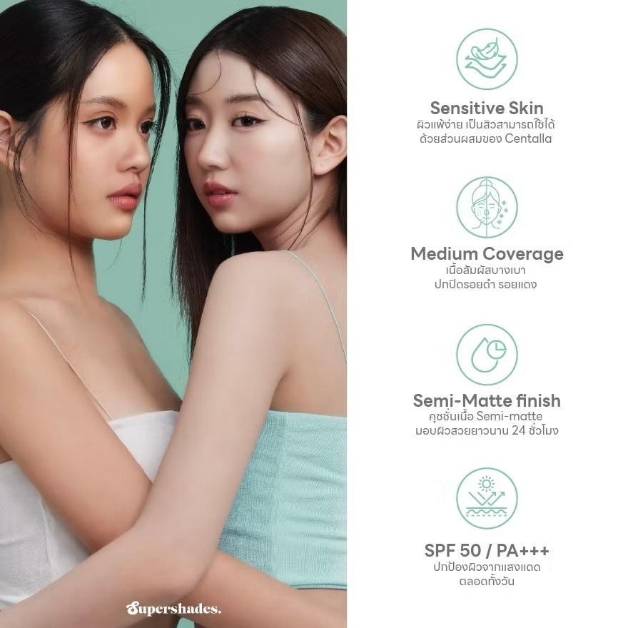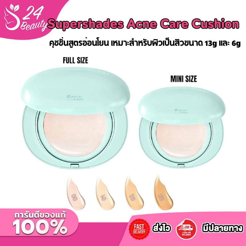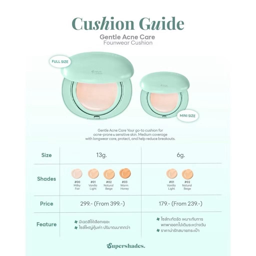 [ตลับเขียว] Supershades - Gentle Acne Care Founwear Cushion คุชชั่นสูตรอ่อนโยน เหมาะสำหรับผิวเป็นสิวขนาด 13g และ 6g