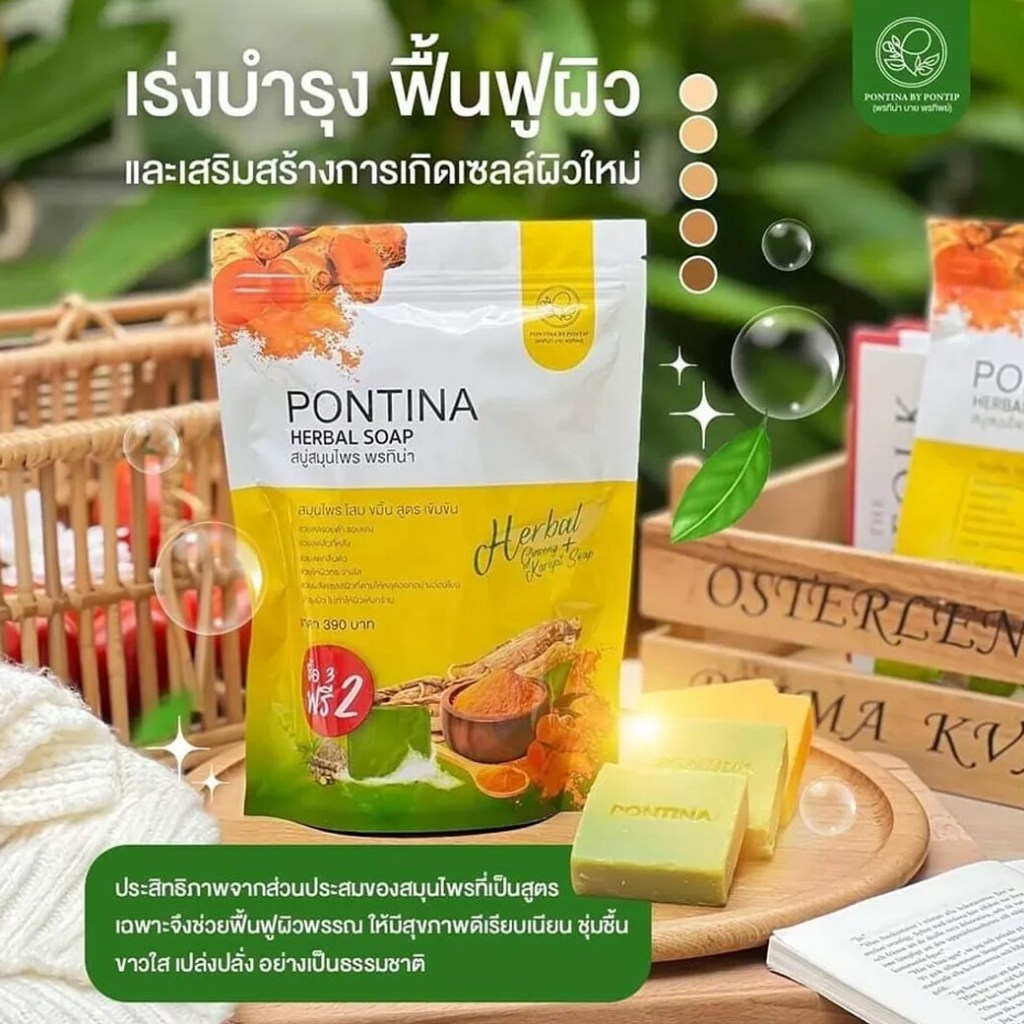 สบู่สมุนไพรพรทิน่า สีเขียวสครับ+สีเหลืองปรับผิว ( 1 ห่อ บรรจุ 5 ก้อน )