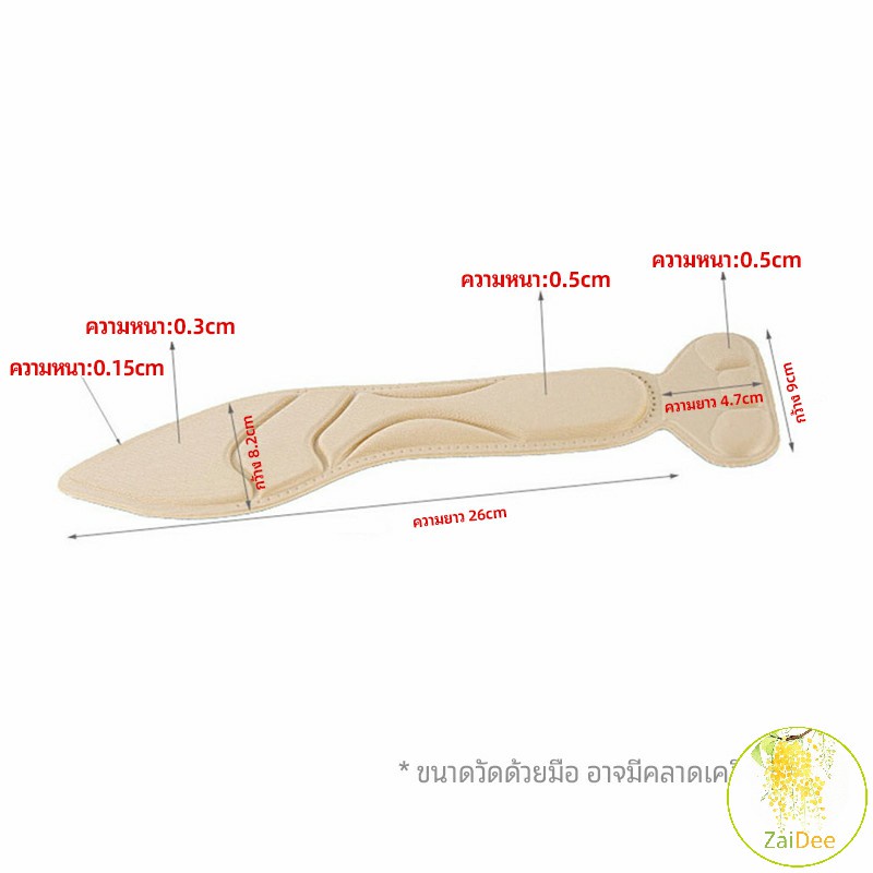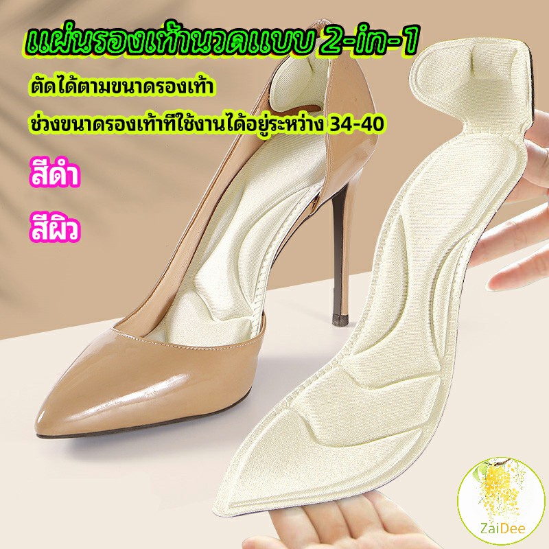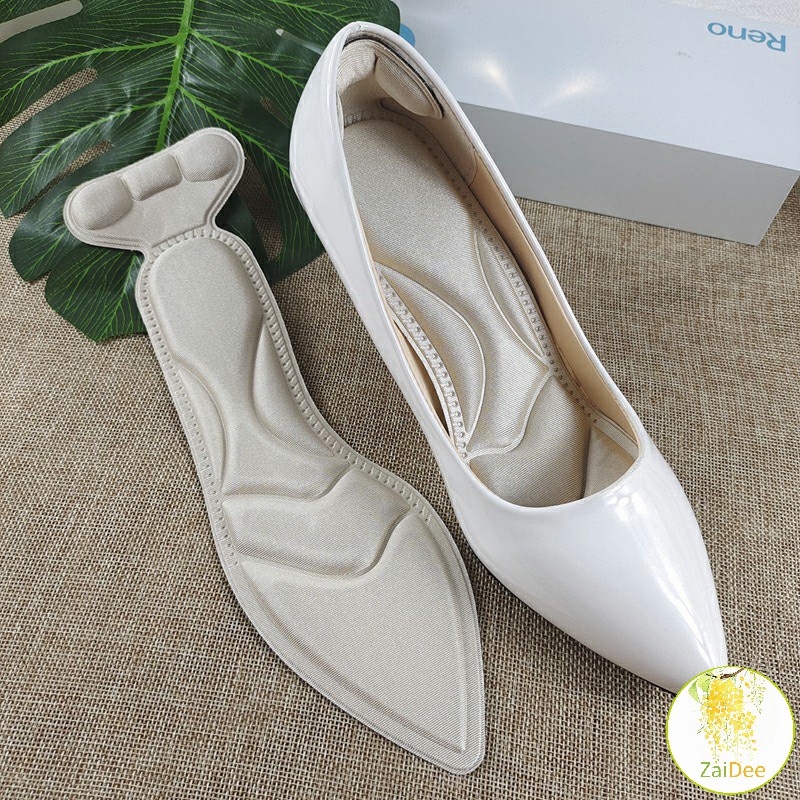 แผ่นพื้นรองเท้าโฟม 2-in-1 insole ดูดซับเหงื่อได้ดี และมีแผ่นรองกันกัดส้นเท้าในตัว ทรงหัวแหลม พื้นรองเท้า insole