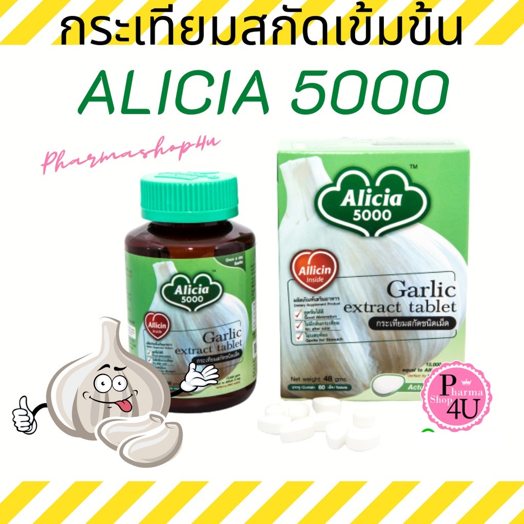 กระเทียม สกัด อลิเซีย 5000 ขาวละออ KHAOLAOR Garlic Extract Alicia 5000 60 Tablets X 1 Bottles