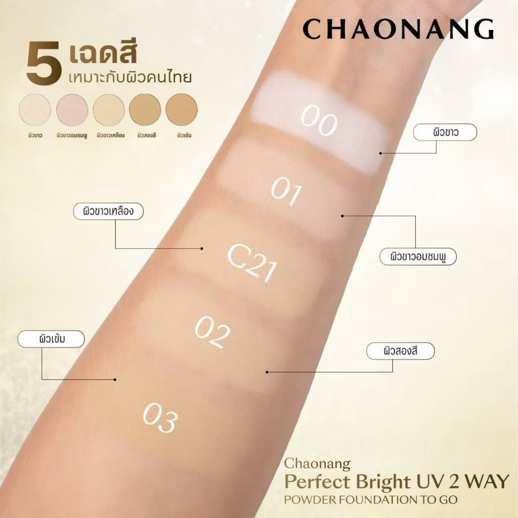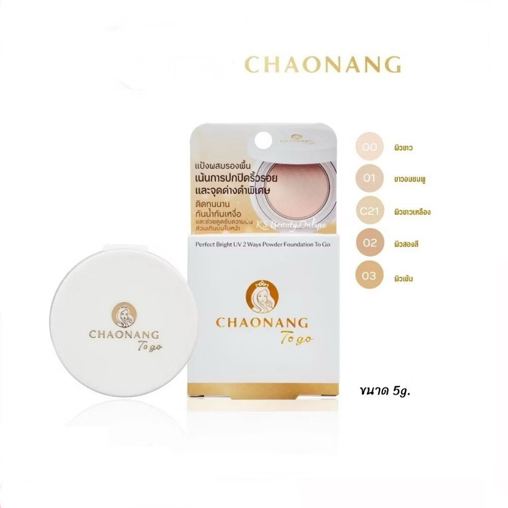 แป้งพัฟเจ้านางผสมรองพื้นมินิ (ขนาด 5 กรัม) แบบพกพา Chaonang Perfect Bright UV 2 Way Powder Foundation To go