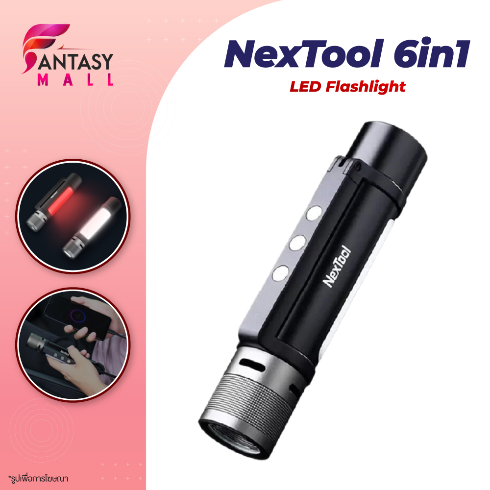NexTool ไฟฉาย ไฟฉายฉุกเฉิน ไฟฉายตั้งแคมป์ ไฟฉายสว่างมากOutdoor 6 in 1 LED Flashlight Ultra Bright Torch