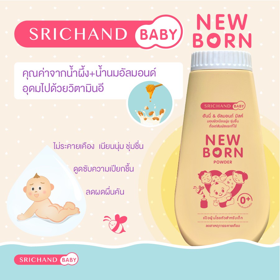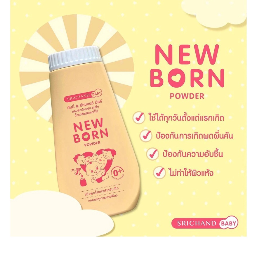 Newborn Powder แป้ง นิวบอร์น ศรีจันทร์ แป้งฝุ่น แป้งเด็ก ผิวเนียนนุ่ม สำหรับเด็ก ขนาด 150 กรัม 01287