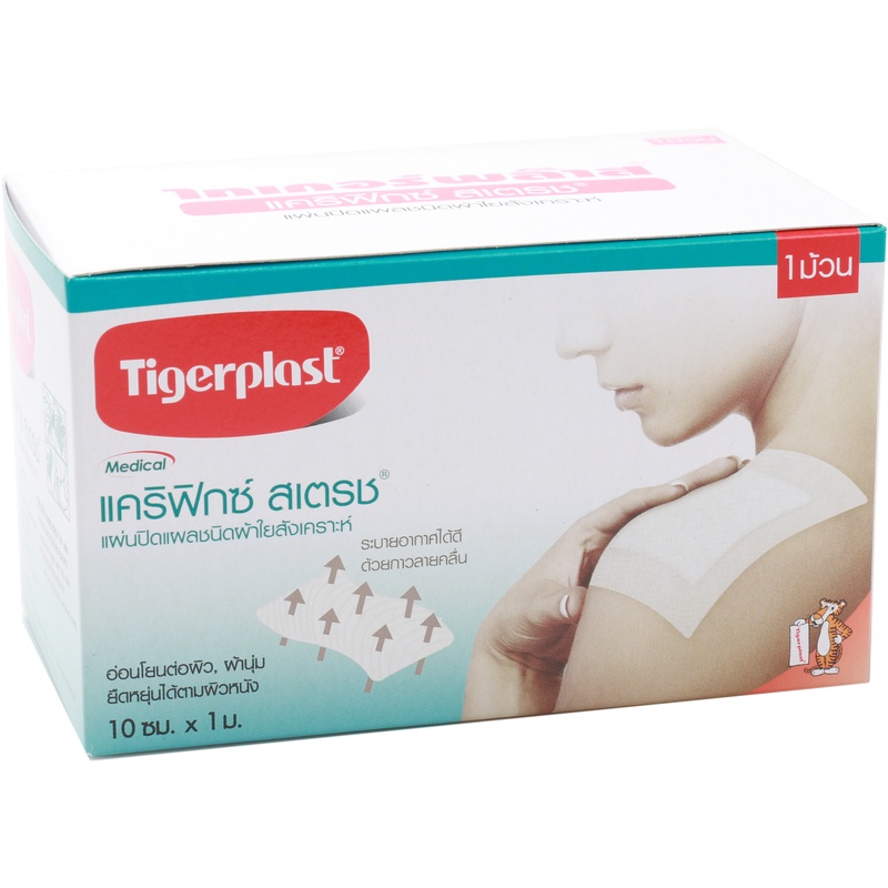 Tigerplast carifix stretch ไทเกอร์พลาสเตอร์ (10 ซม. x 1 ม.) แผ่นปิดแผลชนิดผ้าใยสังเคราะห์ แคริฟิกซสเตรช แบบม้วน