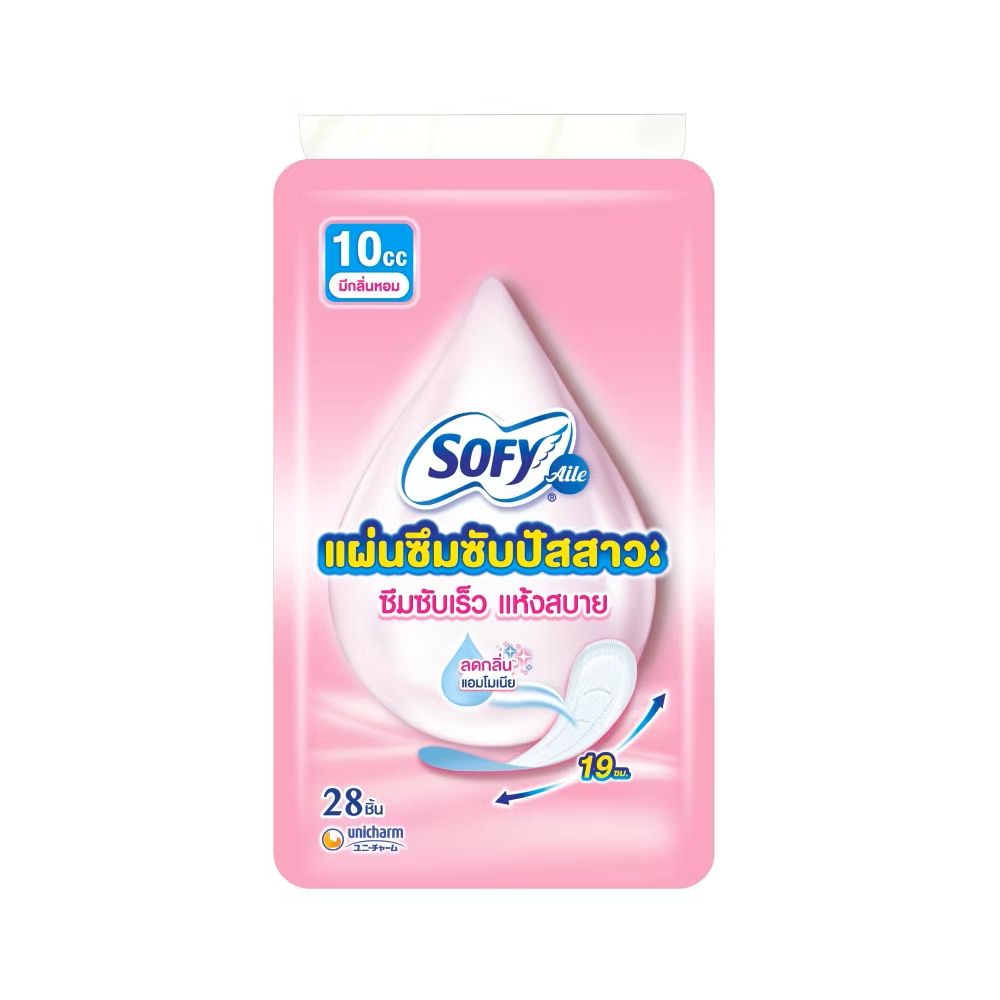 โซฟี แอล แผ่นอนามัยซึมซับปัสสาวะ มีกลิ่นหอม 10ซีซี 28 ชิ้น Sofy Aile Pantyliner for Light incontinence Scented 10cc28pcs