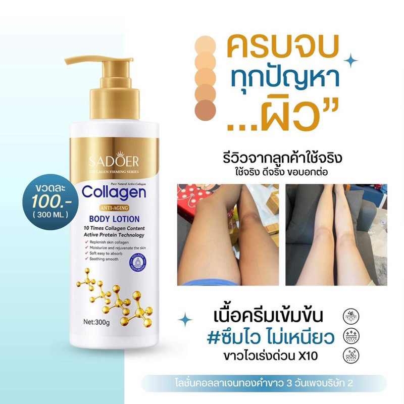 (ถูกสุดๆ) ซื้อ 1 แถม 1 SADOER โลชั่นคอลลาเจนทองคำ ช่วยให้ ผิวกายชุ่มชื้น 300ml ความชุ่มชื้น