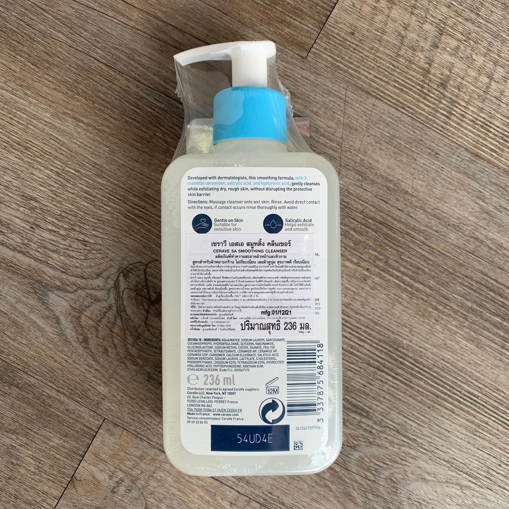 Cerave SA Smoothing Cleanser ผลิตภัณฑ์ทำความสะอาดผิวหน้าและผิวกาย สูตรสำหรับผิวหยาบกร้าน ไม่เรียบเนียน*ของแท้ฉลากภาษาไทย