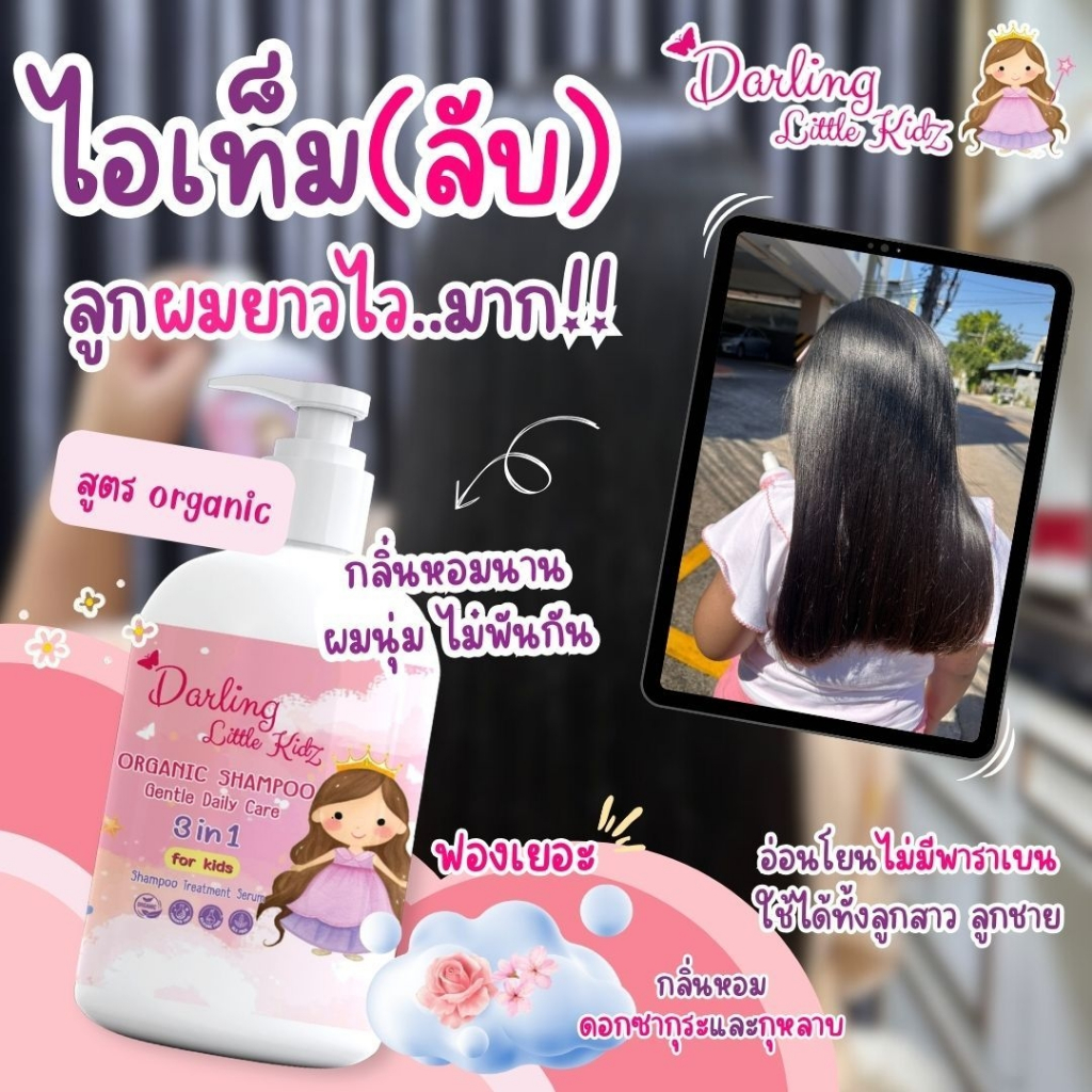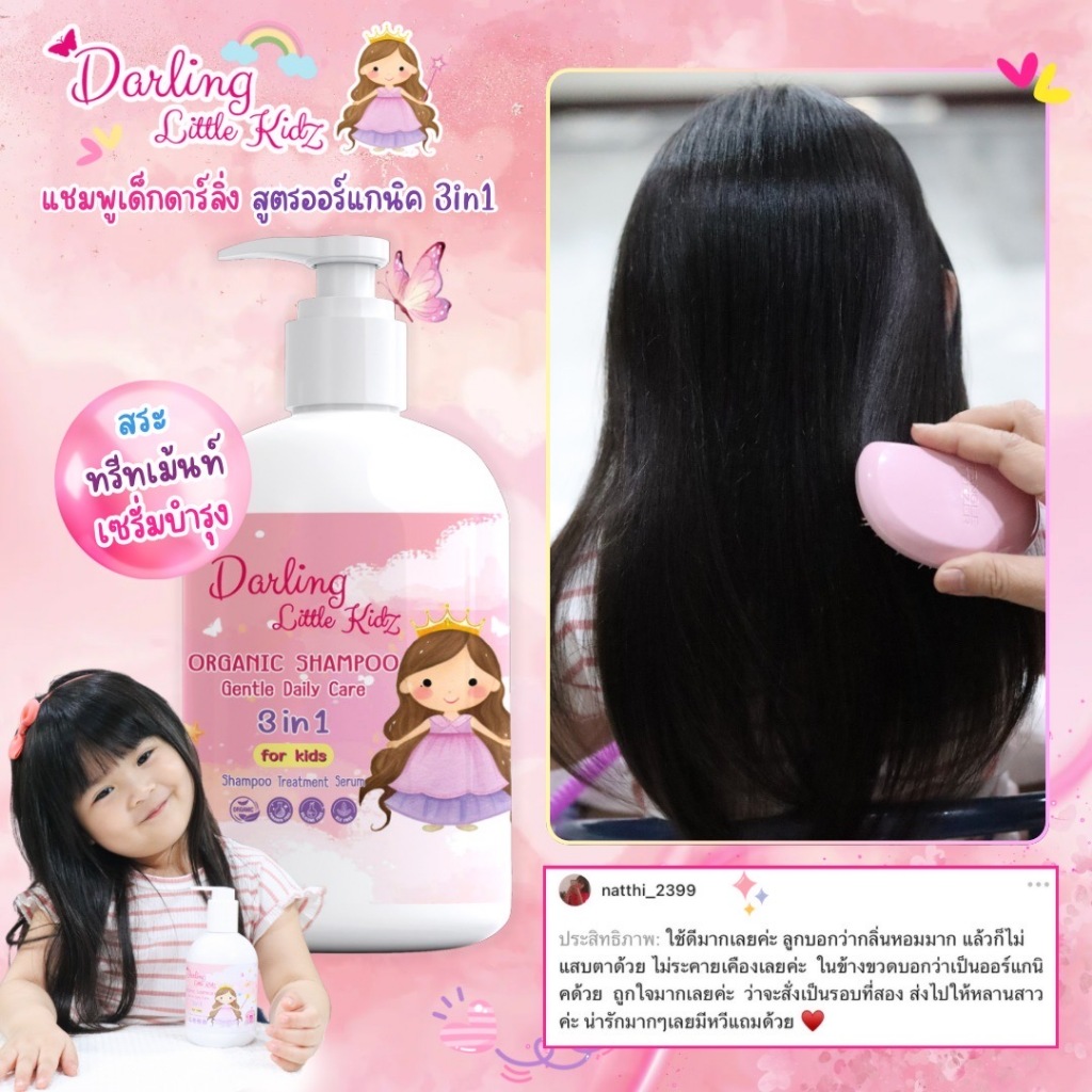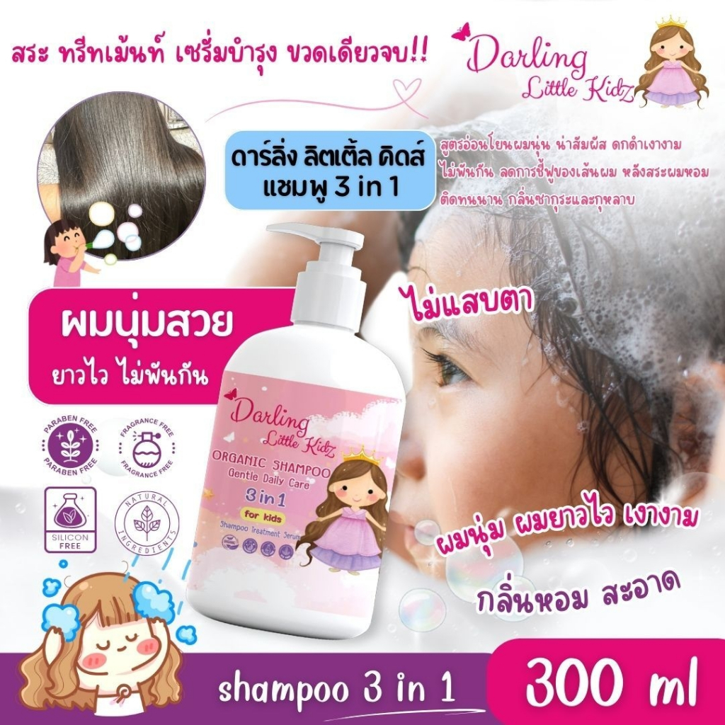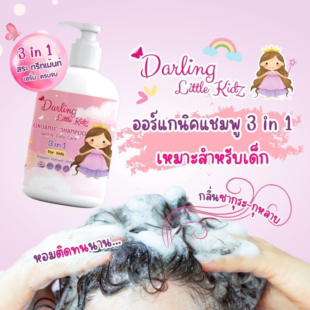 ดาร์ลิ่ง ลิตเติ้ล คิดส์ ออร์แกนิค แชมพู 3in1 ดูแลเส้นผม สำห รับเด็ก(สระ+ทรีทเม้นท์+บำรุง)