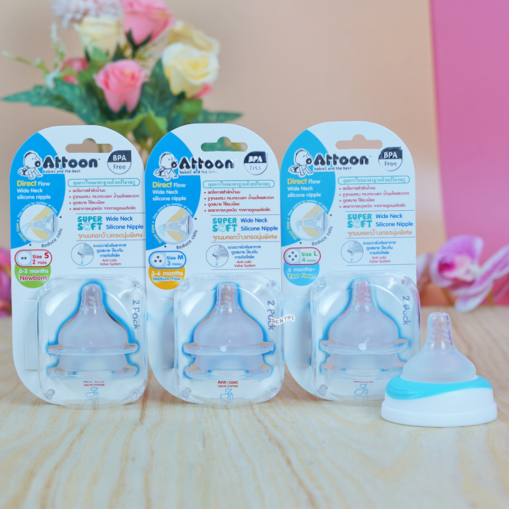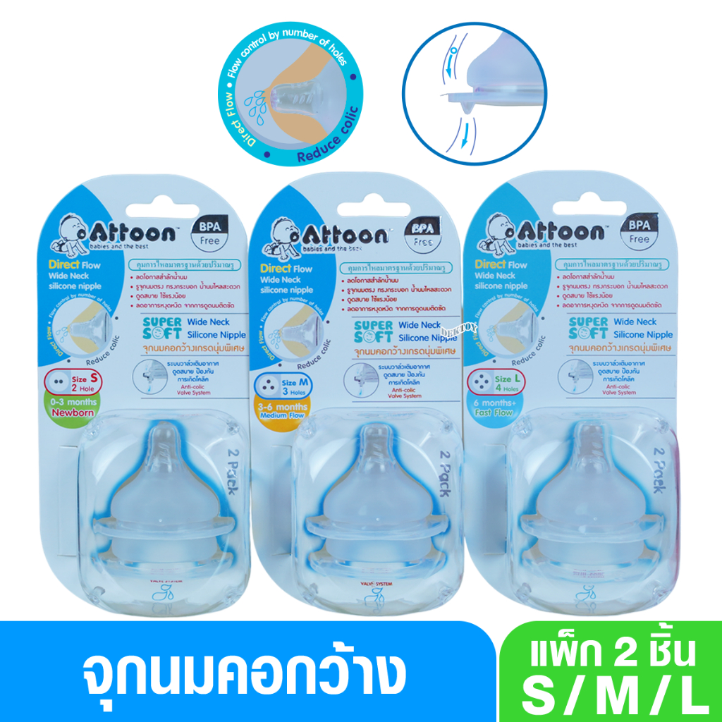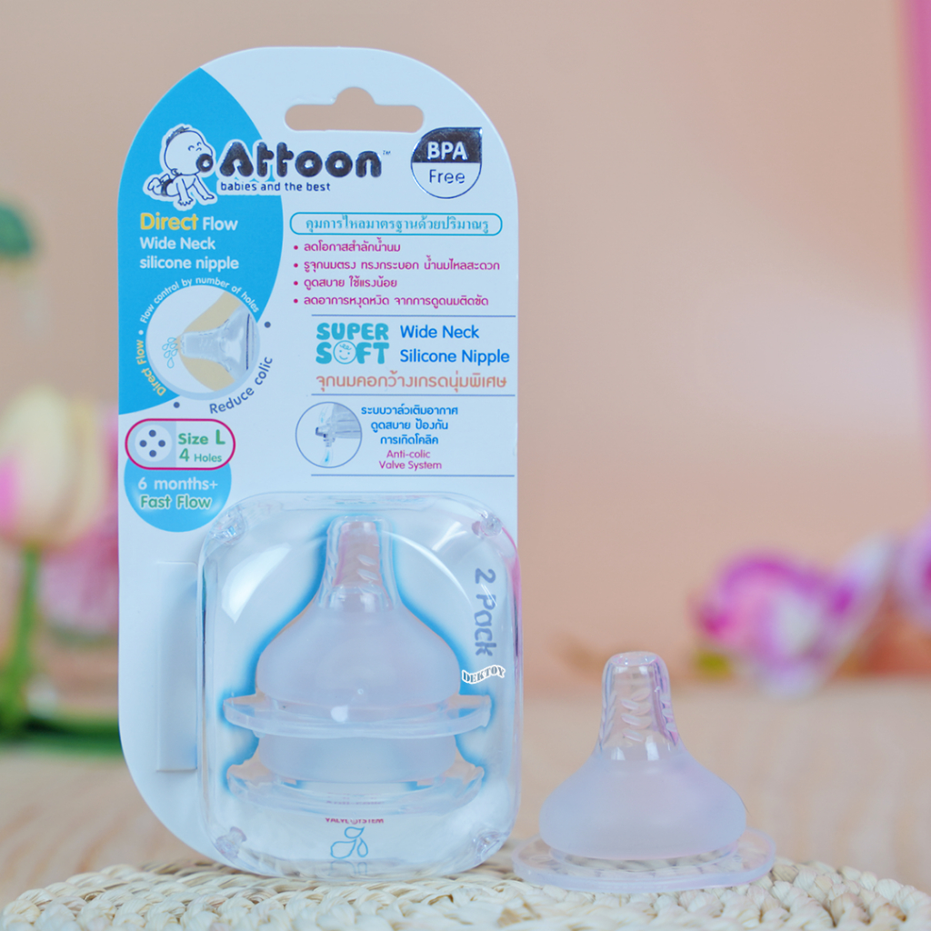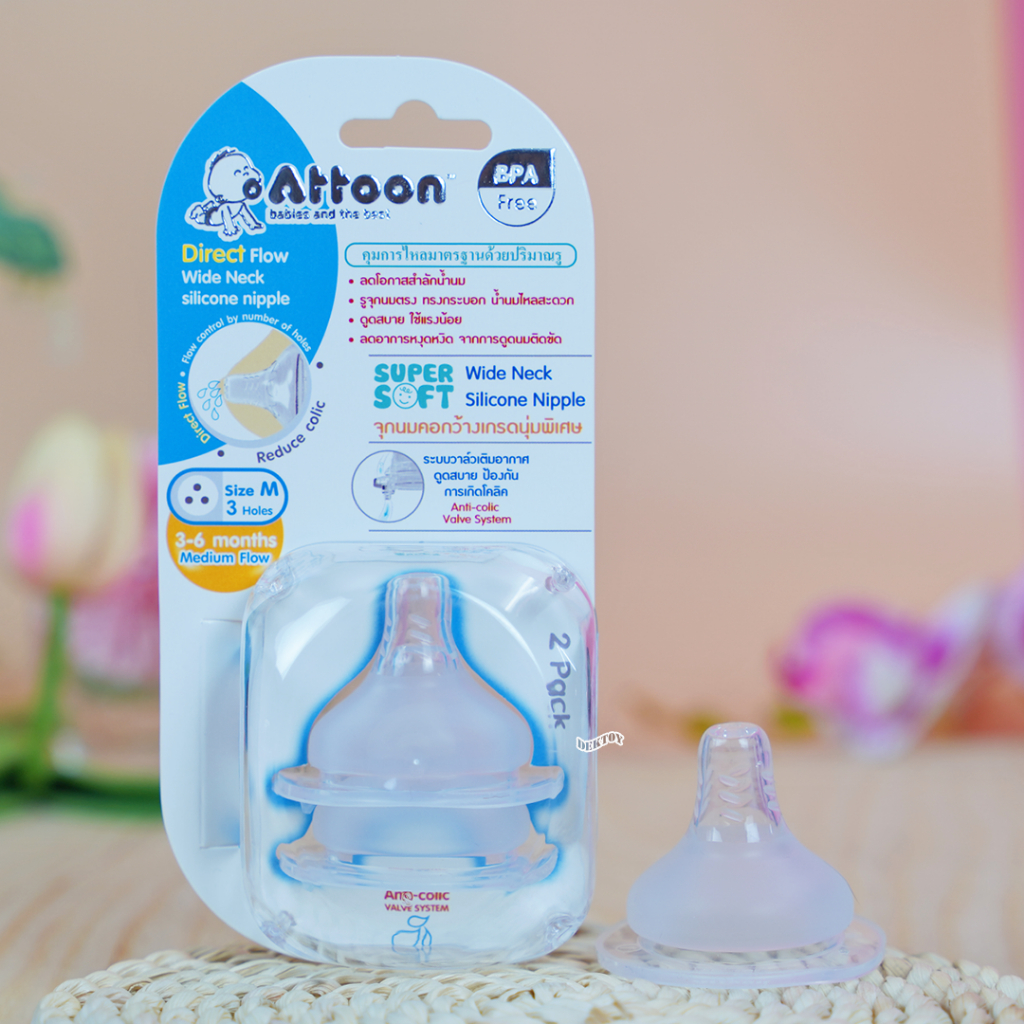 จุกนมแอทตูนนุ่มพิเศษ Attoon แอทตูน จุกนมคอกว้าง จุกนมเกรดนุ่มพิเศษ Silicone Super Soft แพ็ค2ชิ้น
