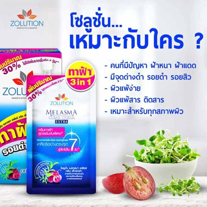 (1ซอง)Zolution ครีมบำรุงผิวหน้า Melasma Clear Cream Extra 13 กรัม