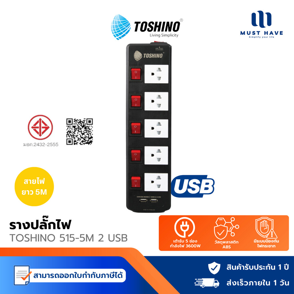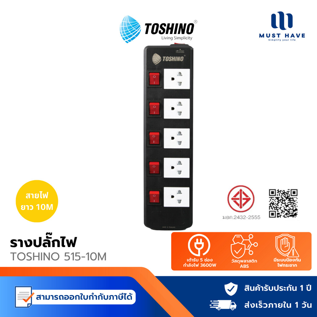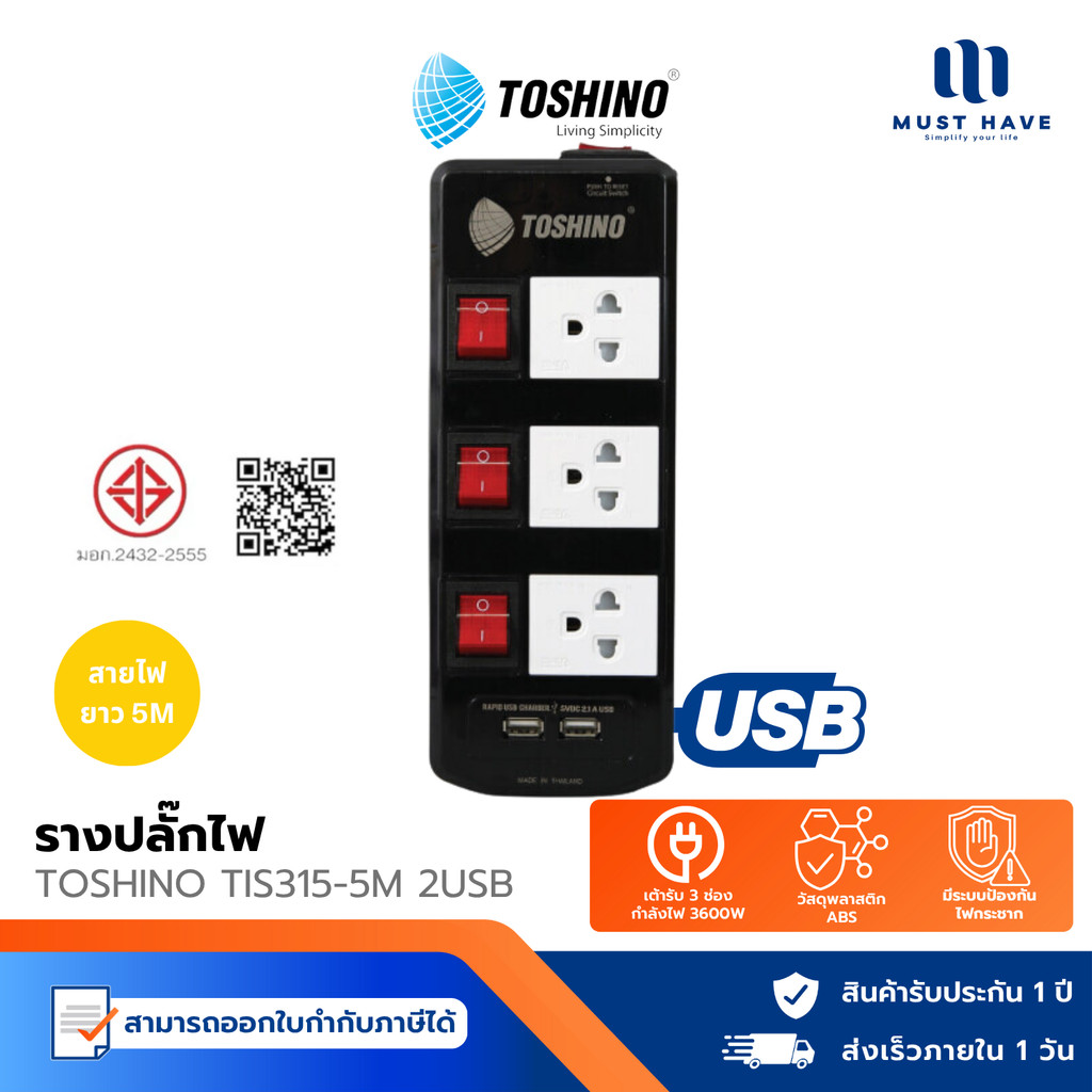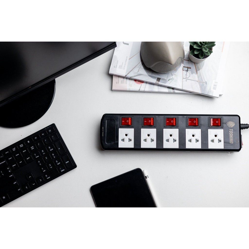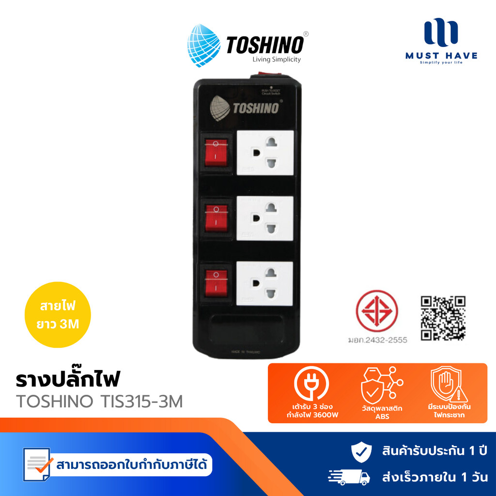 Toshino TIS315 / TIS515 รางปลั๊ก มอก. ป้องกันไฟ กันกระชากได้ทั้ง 2 เท่า สวิตซ์แยก สะดวกในการเลือกใช้