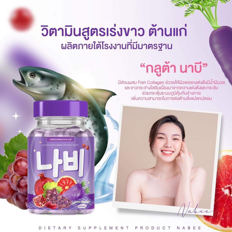 (พร้อมส่ง+มีบัตรตัวแทน) NABEE Gluta💜 กลูต้านาบี น้ำชงนาบีพลัส วิตซีแครอทม่วง💜