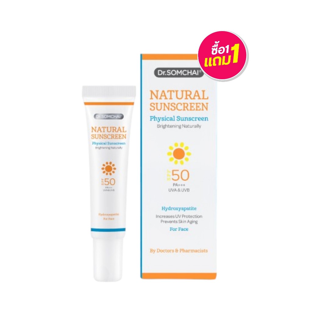 ( 1 แถม 1 ) Dr.somchai Natural Sunscreen For Face ดร.สมชาย เนเชอรัล ซันสกรีน ฟอร์ เฟซ20+20g