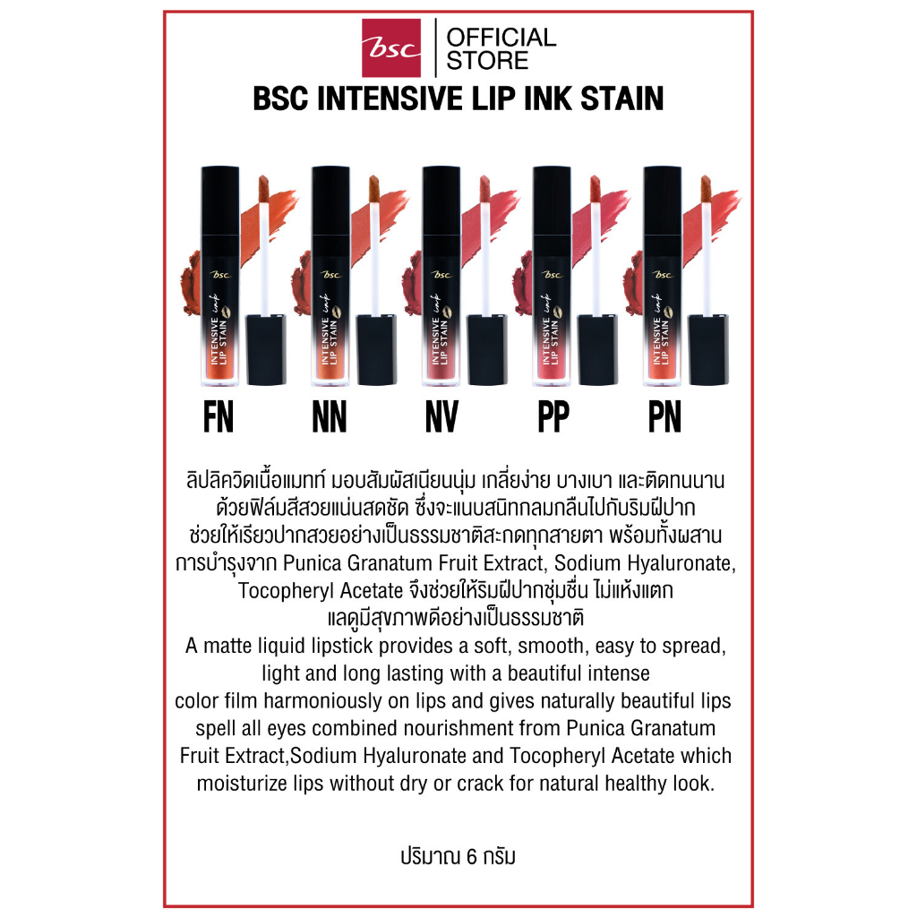 BSC INTENSIVE LIP INK STAIN บีเอสซี อินเทนซีฟ แมท อิงค์ ลิป สเทน ลิปลิควิดเนื้อแมทท์ มอบสัมผัสเนียนนุ่ม เกลี่ยง่าย บางเบา และติดทนนาน