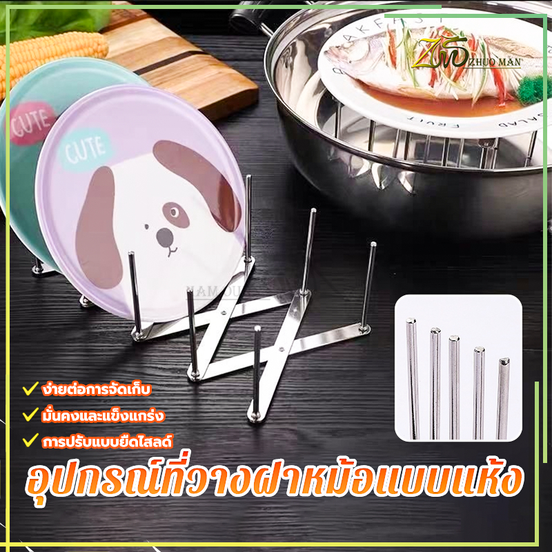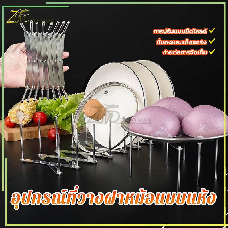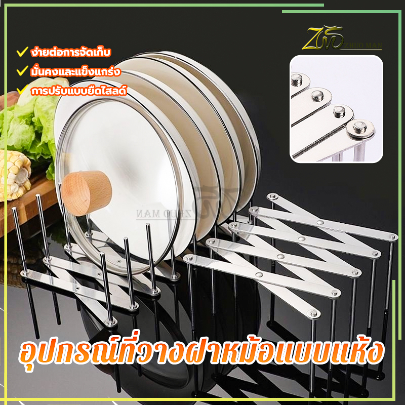 ชั้นวางฝาหม้อ ชั้นวางจาน ที่วางจาน สแตนเลส ที่วางฝาหม้อ อเนกประสงค์ ปรับความยาวได้เพื่อให้พอดีกับจำนวนฝาหม้อ