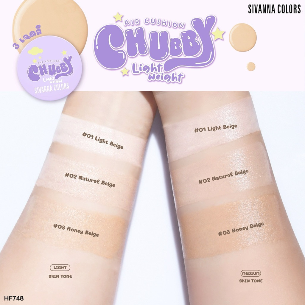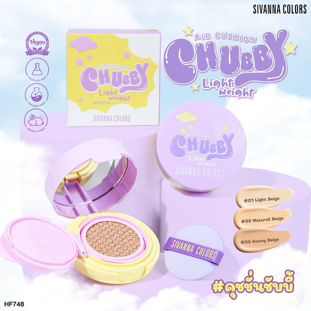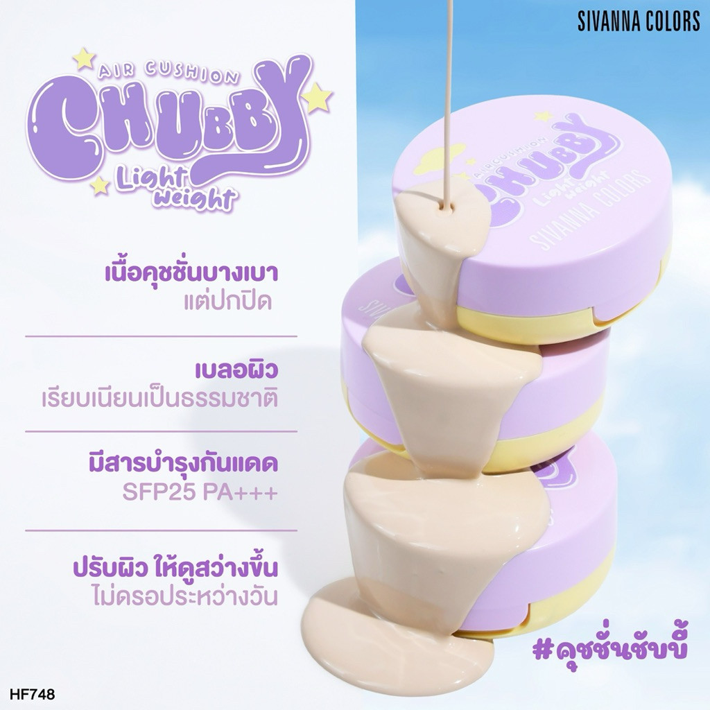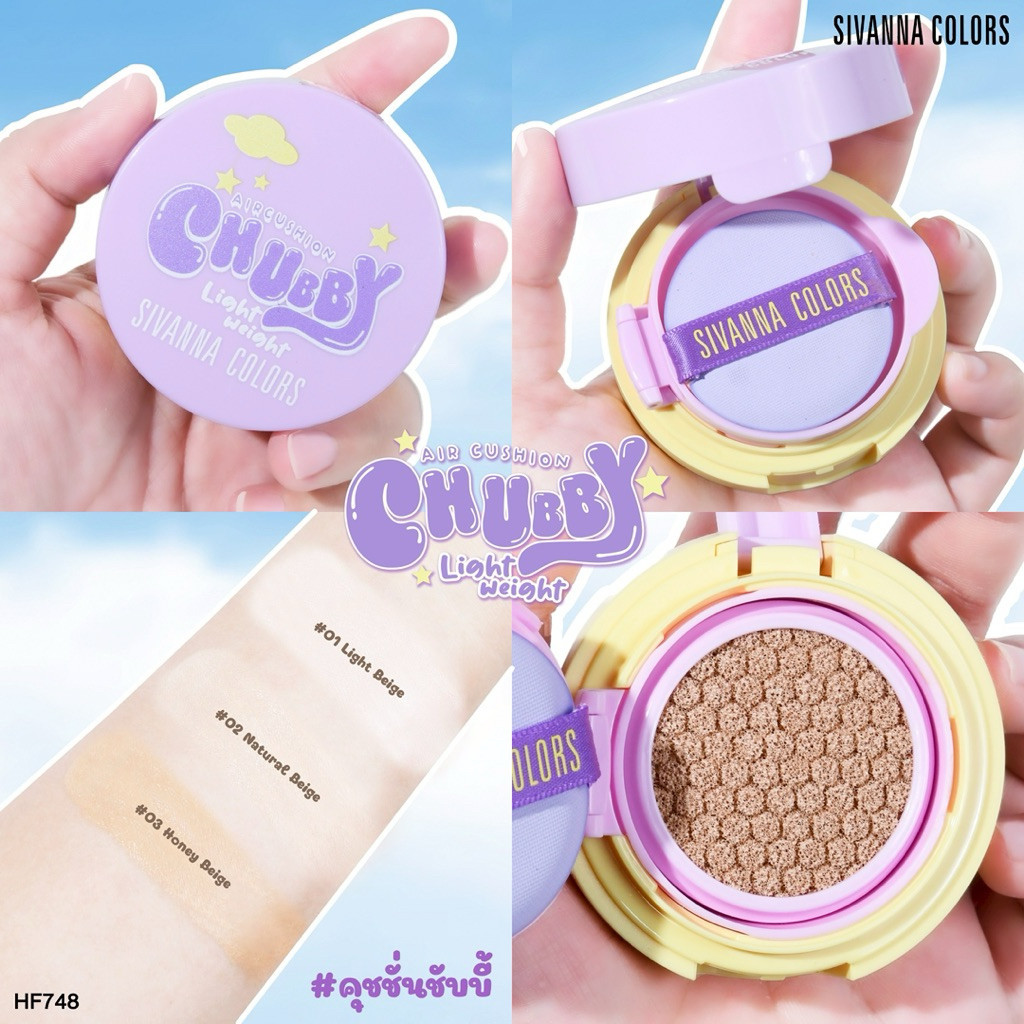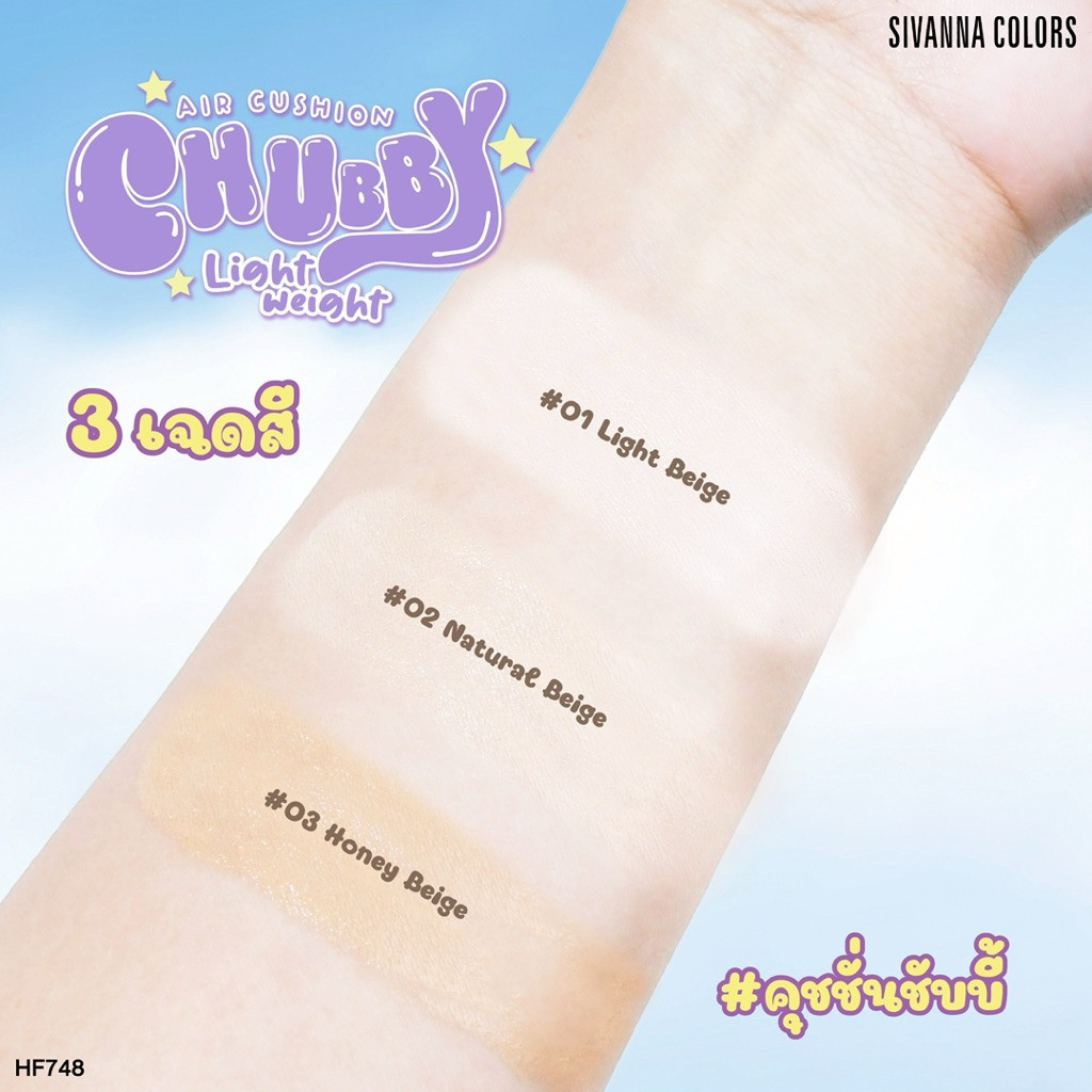 🔥แท้/ดีลสุดคุ้ม/ไลฟ์ทุกวัน🔥(1ชิ้น) HF748 Sivanna Colors Chubby Lightweight Air Cushion SPF 25 PA++ (M)