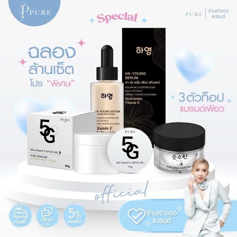 [ลดในไลฟ์50%🔥ของแท้ พร้อมส่ง‼️]ครีม 5Gพี่ฟ้า [แพ็คเกจจริง] แบรนด์เพียวพี่ฟ้า PURE 5G White Vitamin Pure ลดฝ้ากระ หน้าขาว