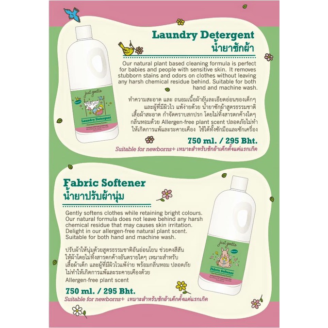 Just Gentle 750ml น้ำยาปรับผ้านุ่มออร์แกนิค Gentle Fabric Softener for Children (750ml)