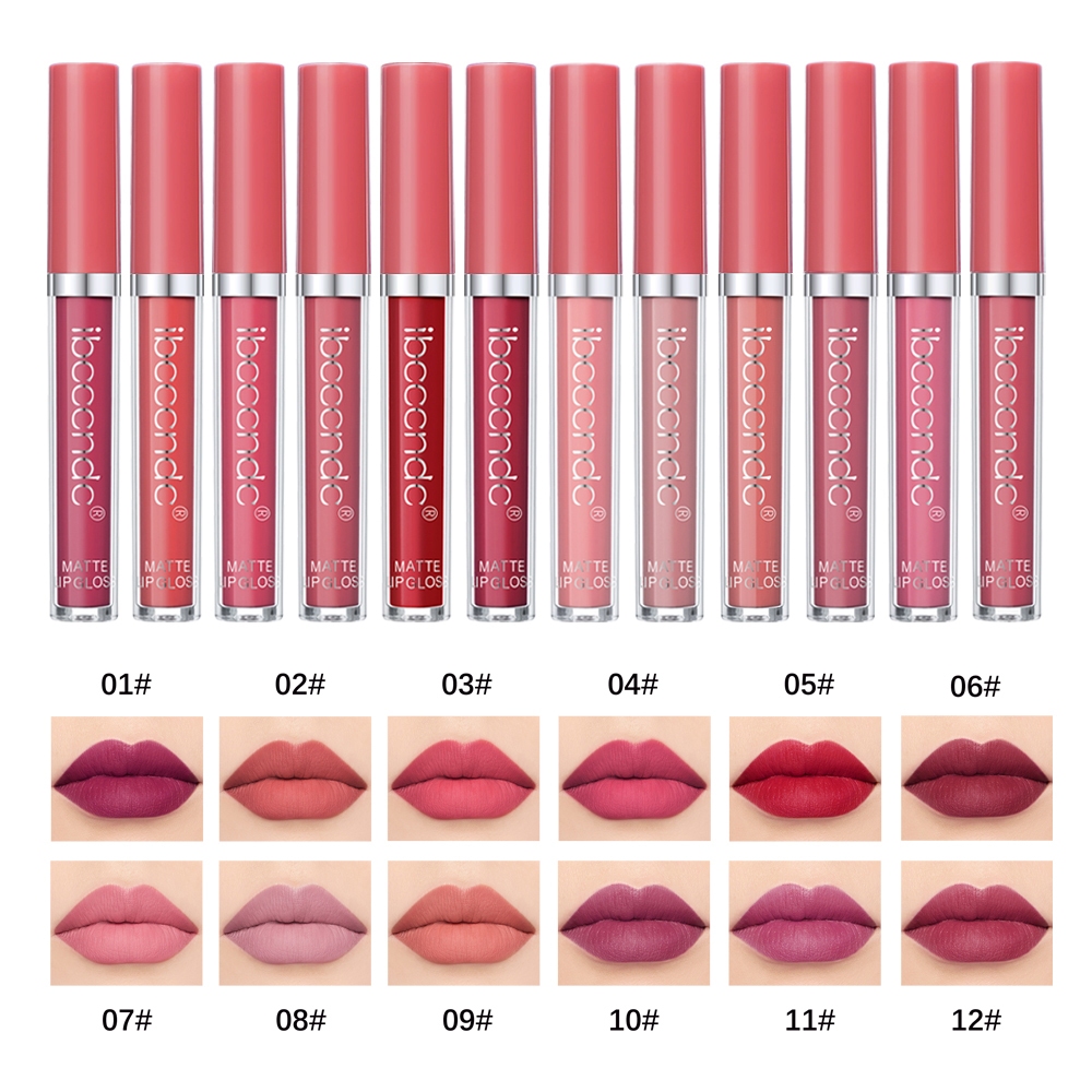 Ibcccndc ลิปสติก ลิปกลอส เนื้อแมตต์ กํามะหยี่ กันน้ํา ติดทนนาน 12 สี
