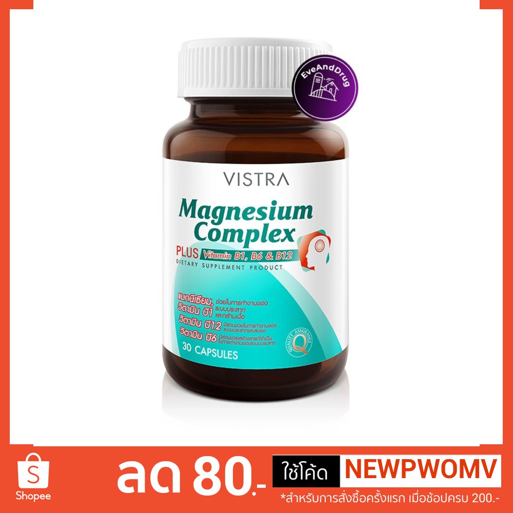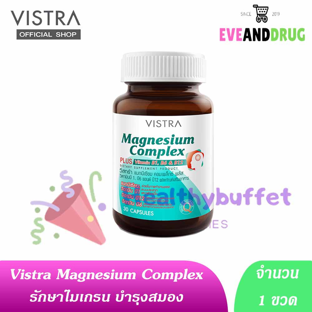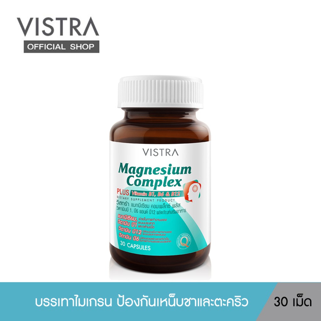 Vistra Magnesium Complex 30 Capsules ( 1 ขวด) Plus Vitamin B1 B6 B12 วิสทร้า แมกนีเซียม 30เม็ด ส่งไวจ้า