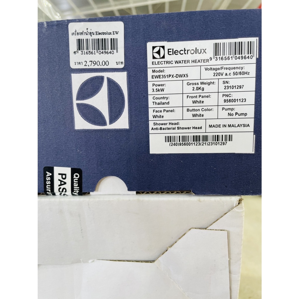 *เครื่องทำน้ำอุ่น เครื่องปรับน้ำอุ่น น้ำอุ่น Electrolux 3500W รุ่น EWE351PX-DWX5 มาตรฐาน มอก. รหัส 049640