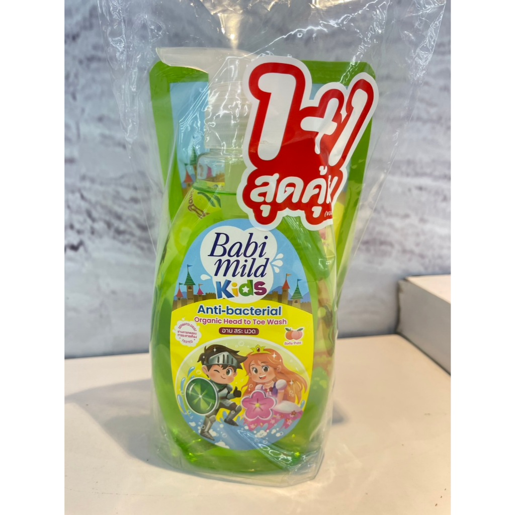 (สุดคุ้ม 1แถม1) Mild Kids by Babi Mild Head to Toe Wash มายด์ คิดส์สบู่เหลวอาบสระ 390 มล.+200มล.