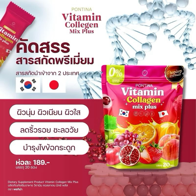 น้ำชงพรทิน่า วิตามิน คอลลาเจน มิกซ์พลัส /พรทิน่ากลูต้า/พรทิน่าไฟเบอร์ XS Plus ราคาต่อซอง