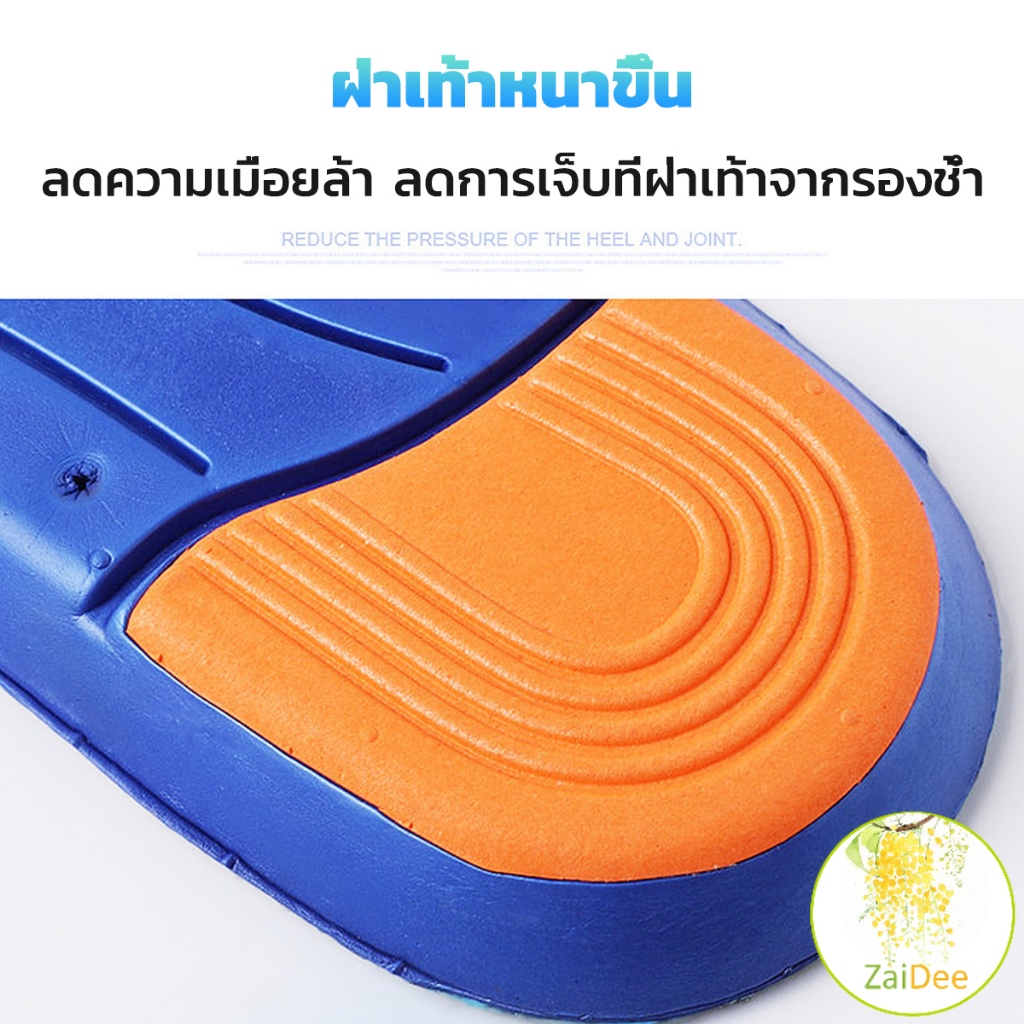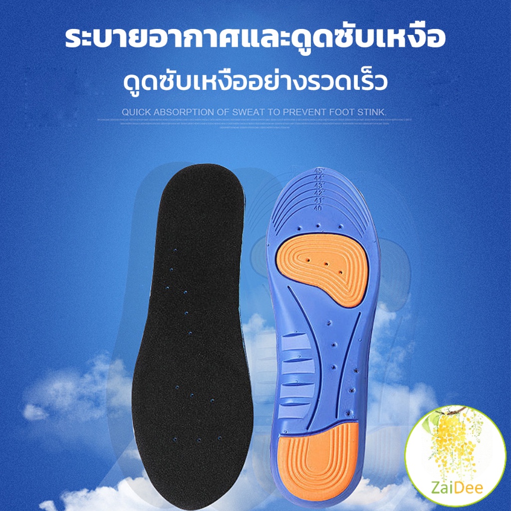 แผ่นพื้นรองเท้ายืดหยุ่นสูง เลือกขนาดที่เหมาะกับการใช้งาน มี Size 35-45 ดูดซับแรงกระแทก แบบนิ่ม ระบายอากาศได้ดี insole